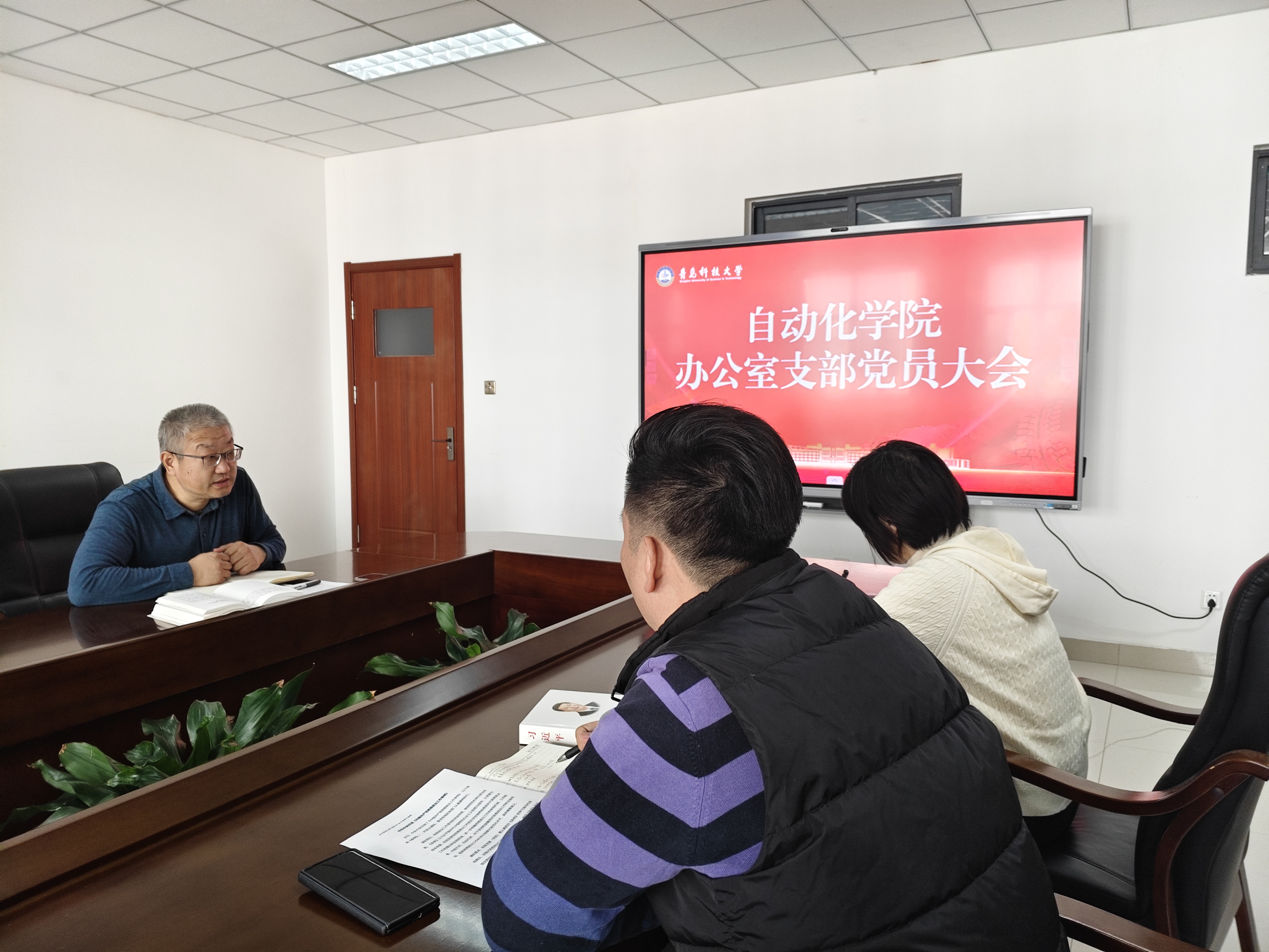 10月23日,办公室党支部集体学习会议在408会议室召开,学院党委书记郭永以普通党员身份出席会议。
