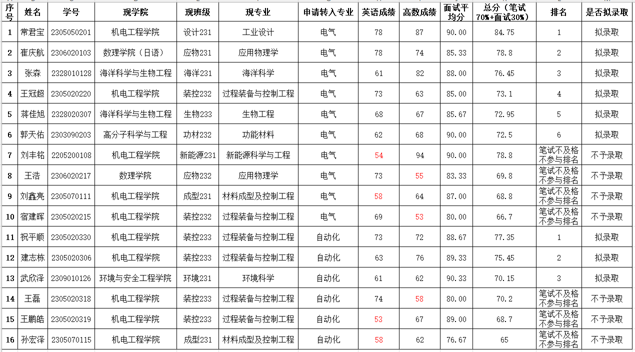 2023级本科学生转专业拟录取公示,公示时间2024年3月8日-3月11日,有问题请联系swag直播 教学办88959930。