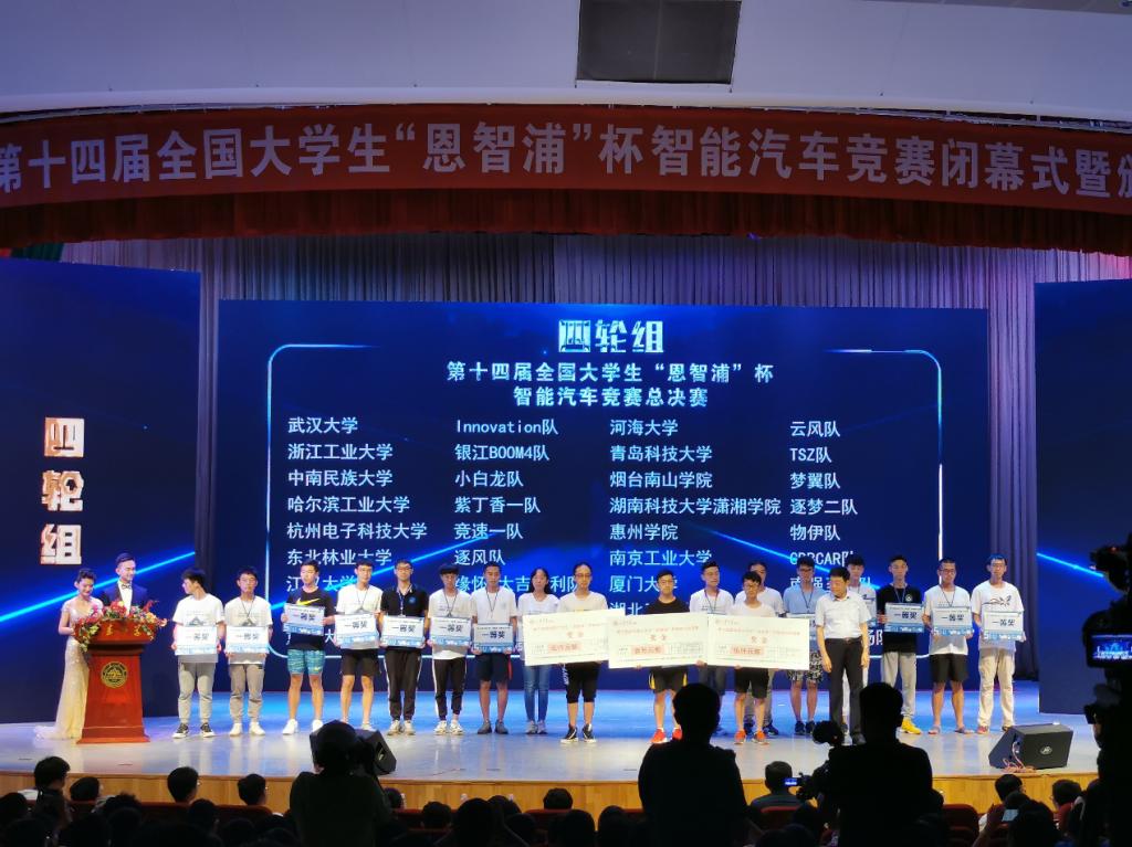 组织,其中3支队伍从山东赛区脱颖而出,闯入全国总决赛。在最受关注的“四轮组”,邢关生等老师指导的“TSZ”队与武汉大学、哈尔滨工业大学、重庆大学等高校同场竞技,在最终决赛中以29.452秒跑完含有障碍、断路、圆环、十字、坡道等多种元素、总长约90米的赛道,夺得全国第8名,引人注目,获国家一等奖(共18支队获得国家一等奖,35支队获得国家二等奖)。“青科大双车”队在强手如云的“双车组”顶住压力,成功完成三轮车和直立车的会车,夺得全国第22名,获国家二等奖(共18支队获得国家一等奖,36支队获得国家二等奖)。 “Dragon”队在“室外电磁组”稳扎稳打,车辆成功穿越颠簸路面、沙地、草地,躲避锥桶,绕过障碍,夺得全国第22名,获得国家二等奖(共18支队获得国家一等奖,30支队获得国家二等奖,4支队未能完赛)。这是我校自2014年参加该项赛事以来的最佳战绩,本届获奖数量和级别在山东省高校中名列前茅,为学校争得荣誉。