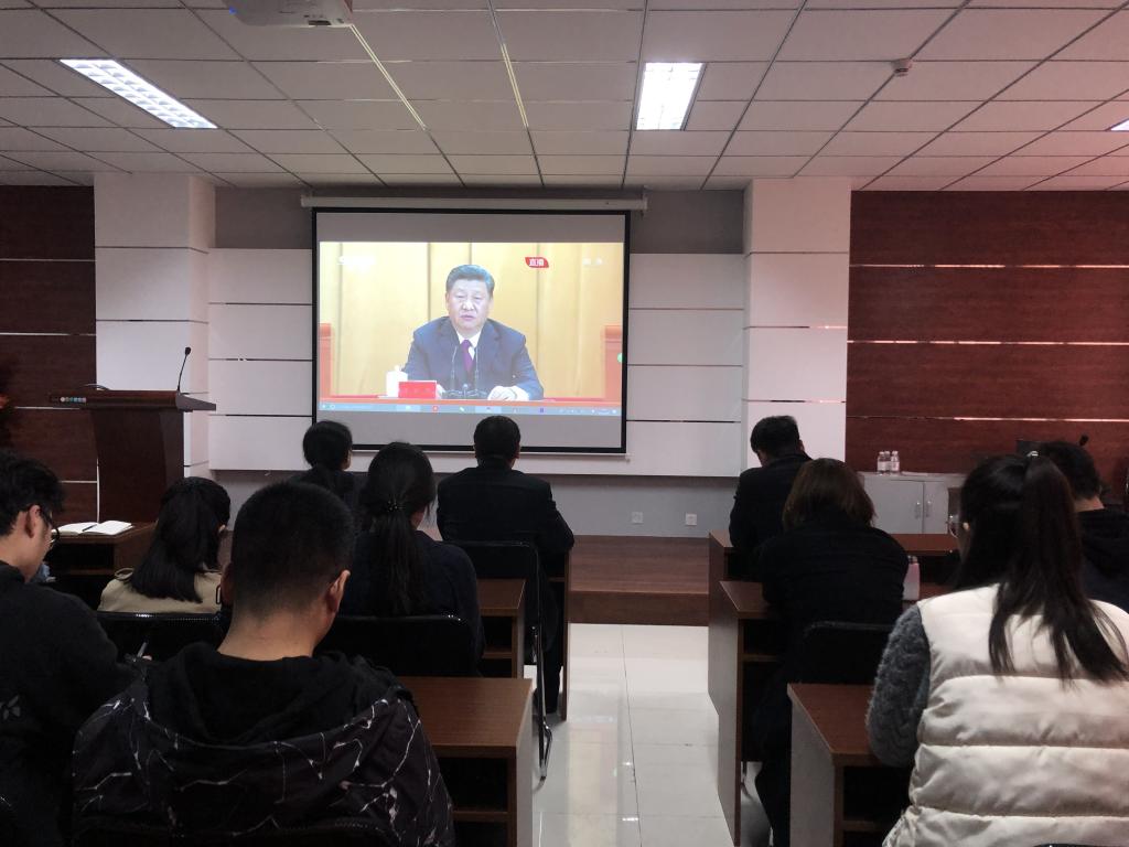 全体专兼职辅导员老师,学生党员、主要学生干部代表一同收看大会实况。回首过往,一代代青年为争取民族独立、国家富强抛头颅洒热血,放眼将来,吾辈实现中华民族伟大复兴中国梦的奋斗路犹长。总书记的讲话字字珠玑、催人奋进,在场同学纷纷表示,奋斗是青春最闪亮的底色,在今后学习工作中,将以总书记重要讲话精神为指引,把个人理想融入民族复兴伟大理想,做新时代的奋斗者!