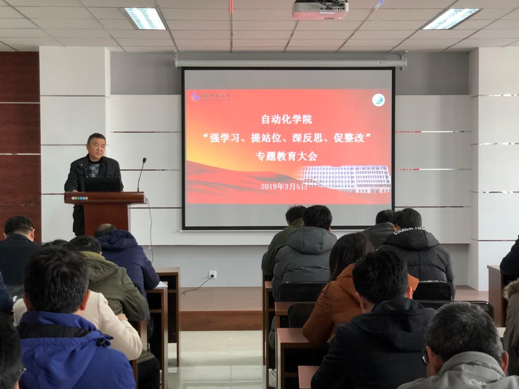 在学院楼410会议室召开“强学习、提站位、深反思、促整改”专题教育大会,学院党政领导、全体教职工参加此次学习。