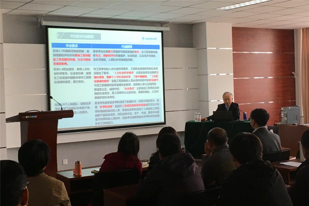 申教授介绍了我国本科工程教育实现国际多边互认的基本情况和认证历程,重点解读了2015版专业认证通用标准修订后的自评报告撰写指导书、撰写自评报告的主要原则,并对指标项撰写要点及要求进行了深入分析。他还结合目前专业认证开展的实际情况,分析了在认证工作中可能会产生的误解及存在的问题,并从学生、培养目标、毕业要求、持续改进、课程体系、师资队伍和支持条件等七个方面提出了详细建议。历时四个小时的专题报告在“工程专业认证永远在路上”的结语和掌声中结束了。