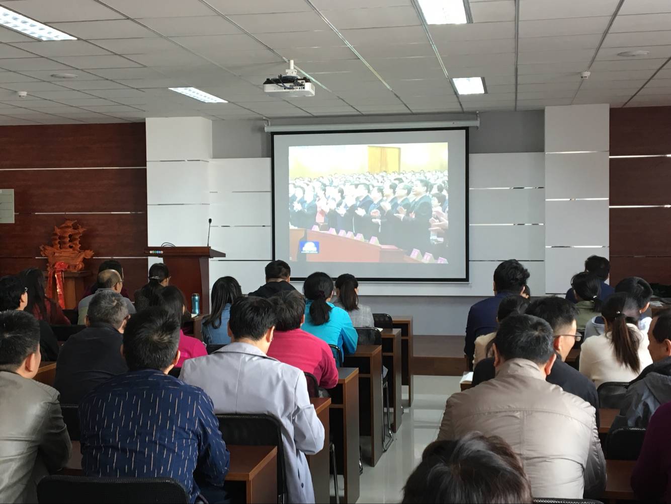 2018年10月30日下午,swag直播 组织全体工会会员收看中国工会十七次代表大会开幕式。将深入开展“当好主人翁、建功新时代”主题活动。