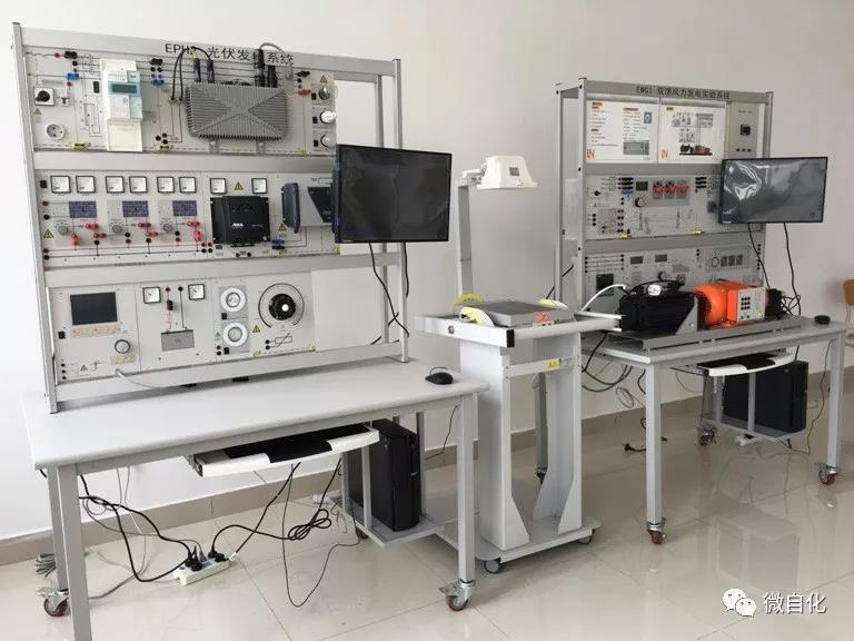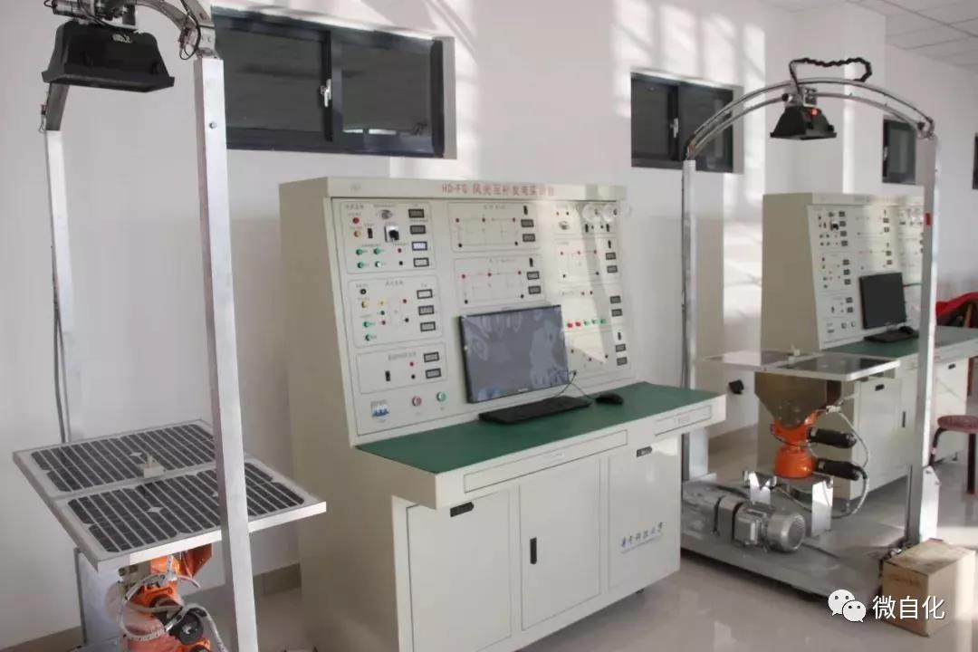 微电网实验室配备风光互补综合实验平台,实验装置主要包括太阳能电池板,二维旋转支架,可调模拟光源,风力发电机组,实训操作台组成。实验室主要承担新能源发电技术的实验教学任务,以及课程设计、综合实验和毕业设计等教学实践任务,通过实验使学生熟悉实际过程中风电、光伏电池等能源发电的原理,掌握相关新能源的使用和设计方法,培养学生对所学知识的综合运用和解决实际问题的能力。