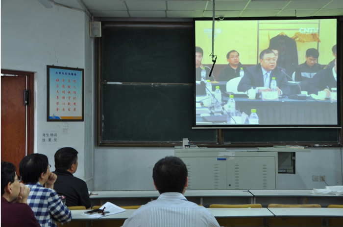 全体教职工观看了《焦点访谈》介绍黄大年教授先进事迹的视频《以身许国叩开地球之门》,和介绍廖俊波同志先进事迹的视频《廖俊波:扑下身子苦干实干》。