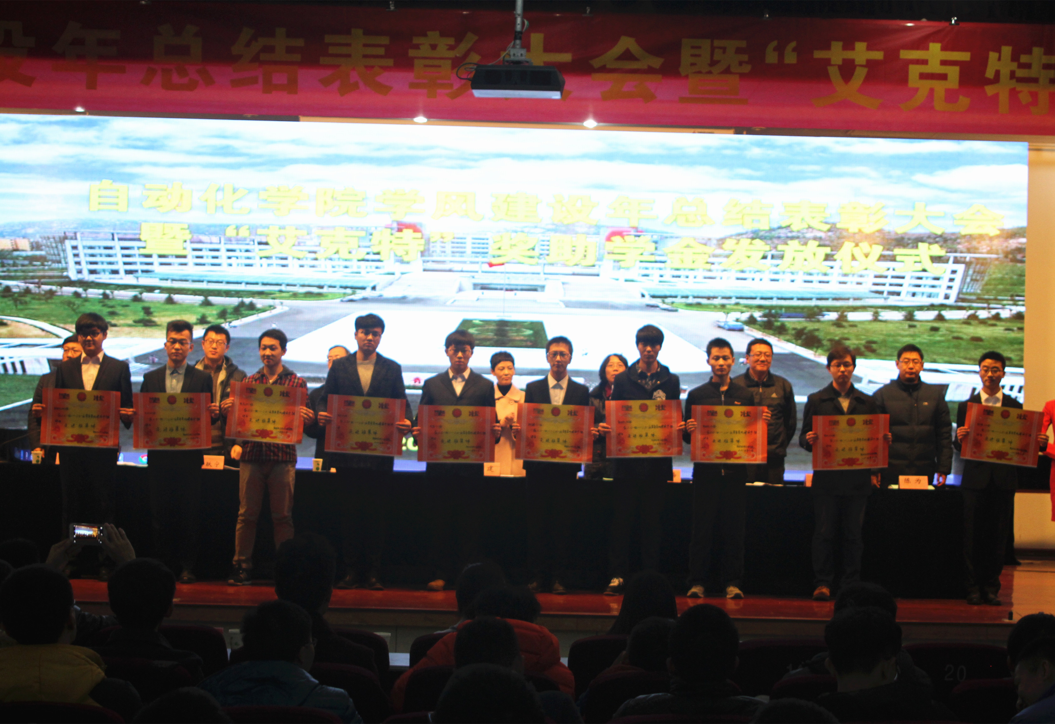 学风建设年总结表彰大会暨“艾克特”奖助学金发放仪式在崂山校区第二报告厅举行。无锡市艾克特电气股份有限公司董事长总经理刘建,学校学院相关领导及受表彰师生和学生代表800余人参加了大会。