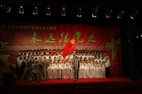 5月4日晚,我校在崂山校区隆重举行了以“永远跟党走”为主题庆祝建党九十周年合唱比赛,全校17支院系合唱团参加了比赛。swag直播