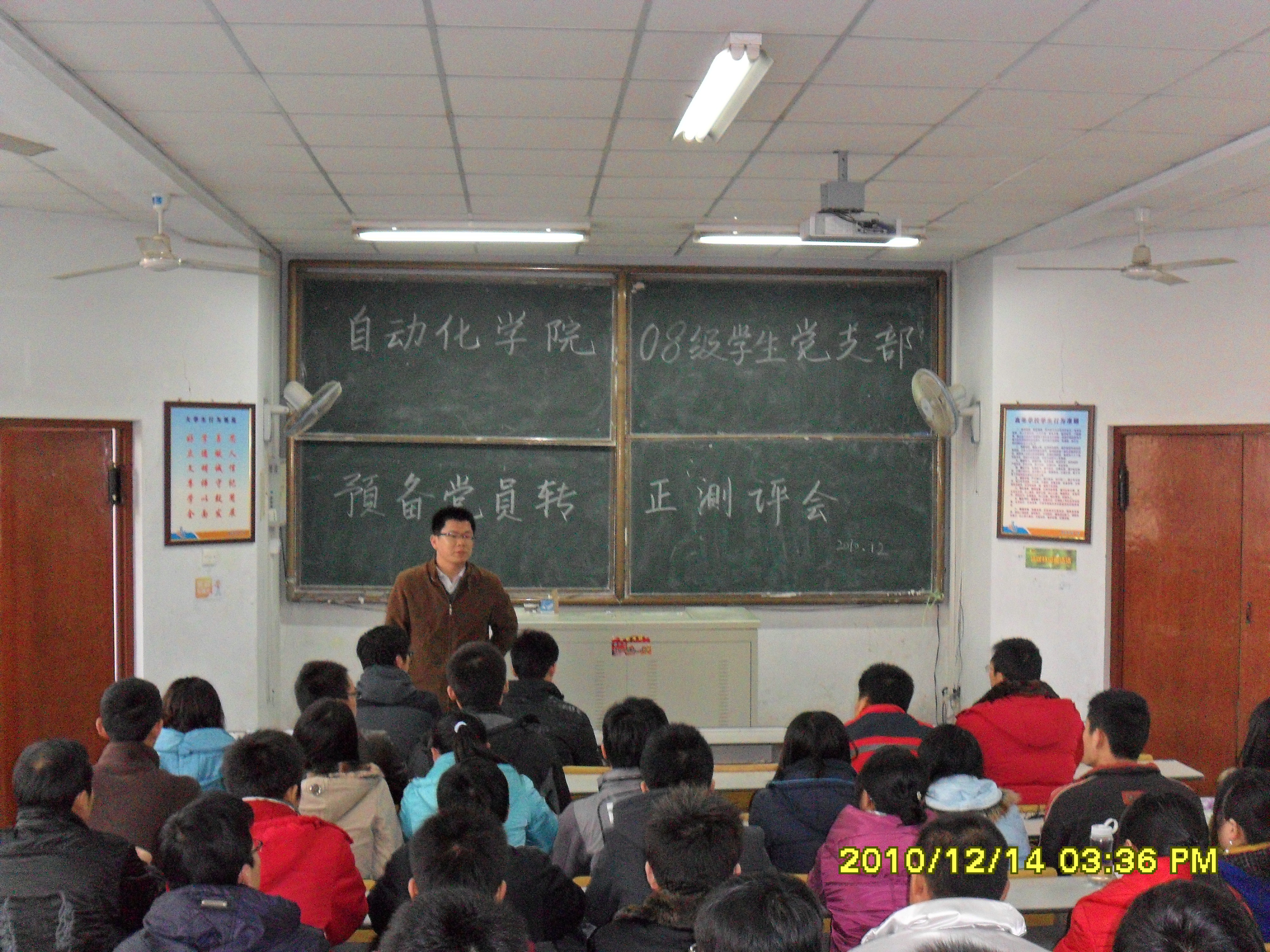 2008级学生党支部在一教102召开预备党员转正测评会。学院党总支副书记兼副院长肖强、分团委副书记刘名森、2008级辅导员、08支部全体学生党员出席,预备党员所在班级的学生代表参加,会议由党支部书记刘名森主持。