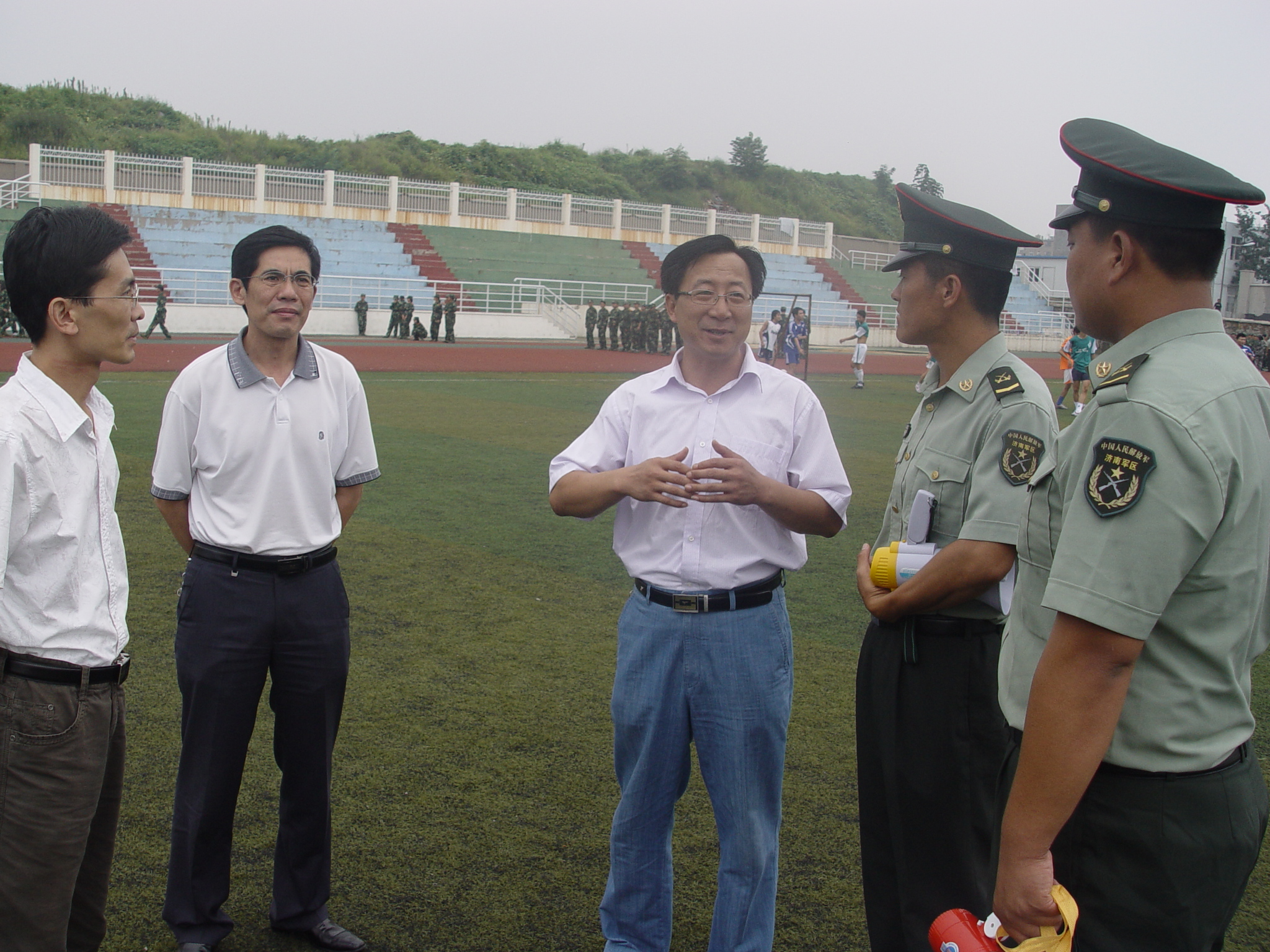 党总支书记兼院长王培山、副院长童刚、副书记肖强以及10级新生辅导员老师来到军训训练场,看望在军训中的教官和学院10级新生,代表学院对来自祖国各地的新同学表达了深切的关怀和殷切的期望。