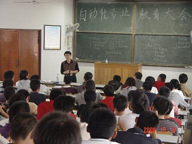 在1教601召开自动化专业教育大会,学院党总支副书记吴汉勇、自动化教研室主任刘军、新生辅导员刘名森、班主任及自动化专业全体新生参加了大会,刘军做报告。