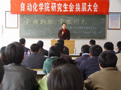 全体研究生参加。上一届院研究生会主席韩雯首先在会上作总结发言,她对上一届院研究生会的工作情况作了认真全面的总结,并谈了自己的工作感言。新一届院研究生会主席宋蓓向大家介绍了院研究生会的成员,并对院研究生会的工作计划作了详细汇报。分团委书记曲斌艳在会上对院研究生会的工作提出了具体要求,并动员全院研究生同心协力一起做好院研究生会的各项工作。副院长童刚在讲话中指出,希望院研究生会充分发挥导师与学生间的桥梁纽带作用,积极开展丰富多彩、特色鲜明的各项活动,增强师生间、同学间的凝聚力;并对同学们所关注的研究生学习要求问题作了详尽解答。院党总支副书记吴汉勇在会上强调,研究生中的中共党员要发挥好模范带头作用,密切配合院研究生会搞好各项活动,要在全院营造出一个良好的学术氛围,同时要求研究生同学要注重提高自身的思想品德素养。校研究生工作部副部长贺伟在会上对院研究生会的工作给予了充分肯定,希望新一届研究生会成员以更饱满的热情,更认真的态度做好今后的各项工作,院研究生会要加强与校研究生工作部的沟通,以便更好地为同学们服务。