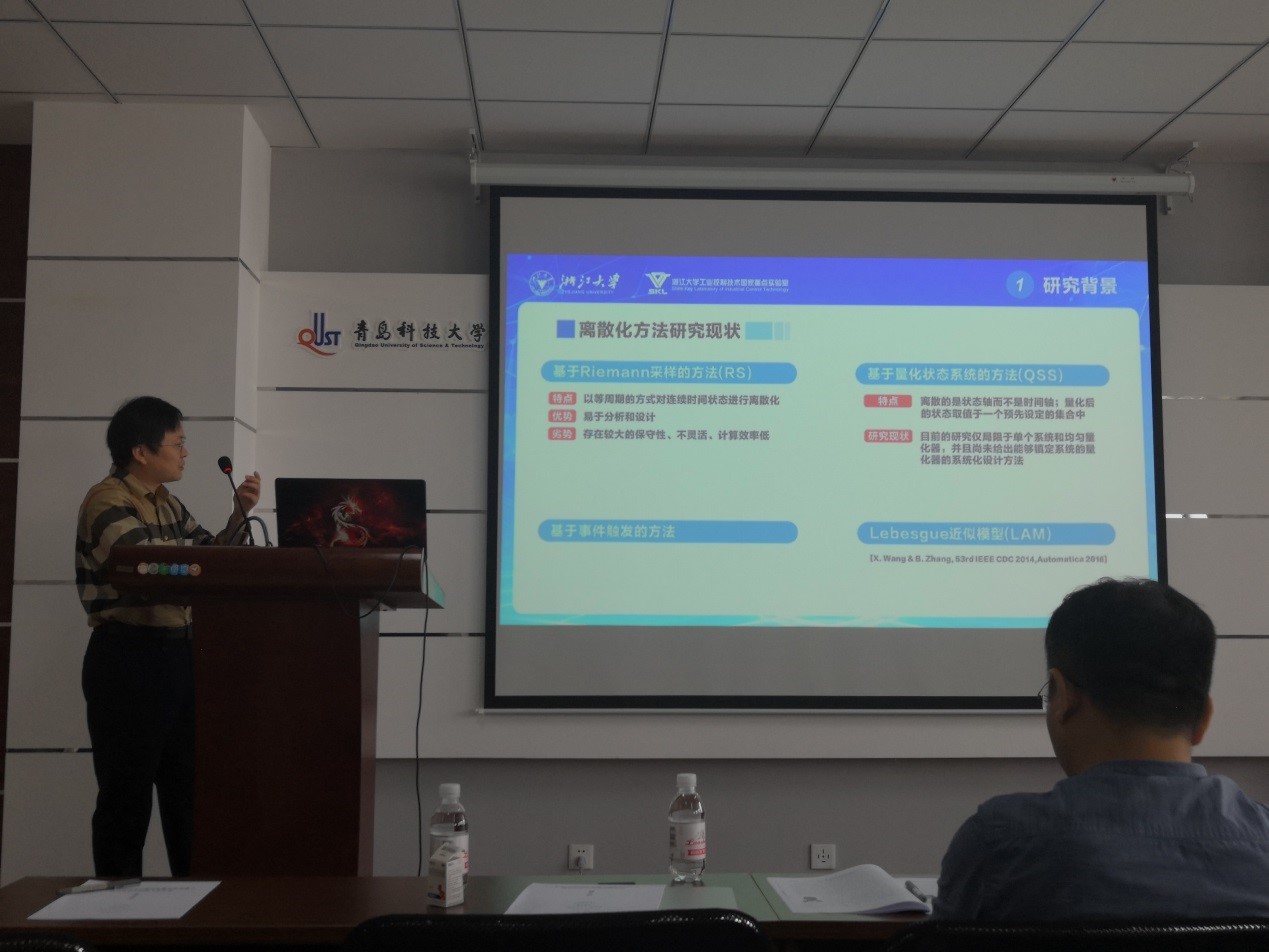 大会包括四个主旨报告。首先,由中国科学院自动化研究所的程龙教授做了题为“Relentless Attacks against Remote State Estimation in Smart Grids”的学术报告,主要介绍了智能电网中对测量采集和远程状态估计的攻击方法,分析了构造的伪数据注入攻击可以绕过基于Kalman的检测方法。此外,还提出了通过分布式控制的方法来减少构造的虚假数据注入攻击所造成的危害。第二个报告是由浙江大学吴争光教授做了题为“分布式连续非线性系统的异步Lebesque近似模型”的学术报告,其主要内容是研究了分布式异步的离散时间模型来近似分布式的连续时间非线性系统,其中的子系统间存在物理耦合且能够与邻居节点交换信息,构建了一个分布式的时间触发系统,该系统的状态轨迹与Lebesgue近似模型的轨迹一致,并进一步给出了Lebesgue近似模型渐近稳定、近似误差有界、避免出现Zeno行为的条件。此外,浙江工业大学的刘毅教授做了题为“多模式过程数据驱动建模方法”的学术报告,重点汇报了迁移学习等数据驱动方法在多模式过程建模的进展。浙江工业大学的冯远静教授做了题为“颅神经成像算法进展”的学术报告,主要介绍了颅神经成像的现状、存在问题,并汇报了其课题组在多模态颅神经成像算法中的新进展。最后,与会专家就双碳、人工智能、工业互联网背景下控制学科建设与发展问题进行了深入研讨与交流。