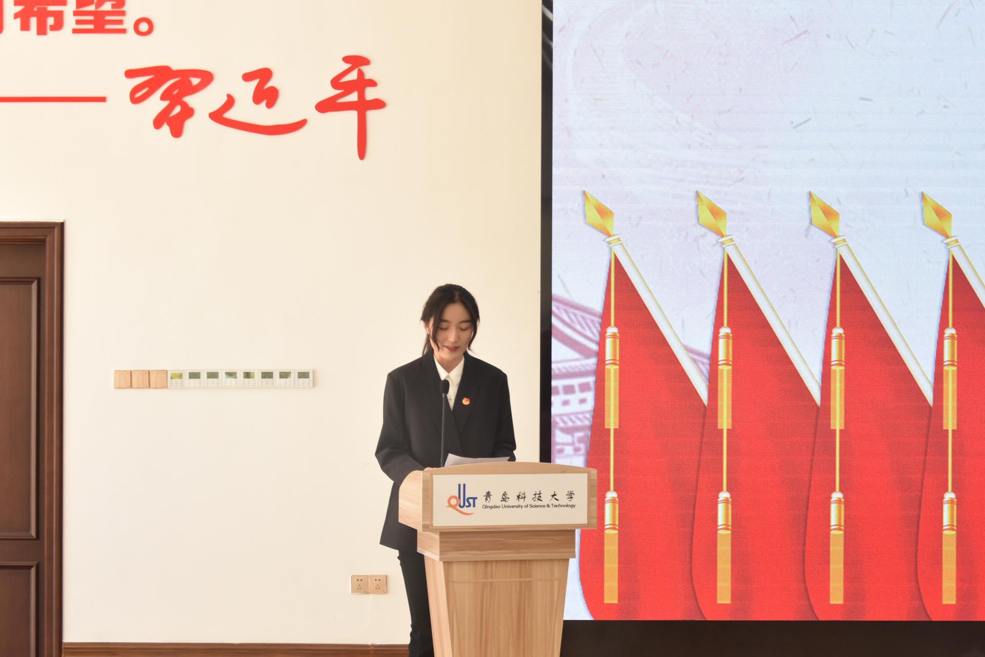 机电工程学院学生代表张致远发言,希望青科大学子能抓住时代的接力棒,勇立潮头敢于奋斗,向前迈进,奔赴更加美好的明天!