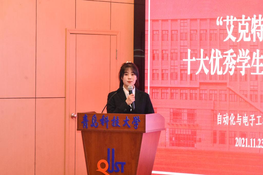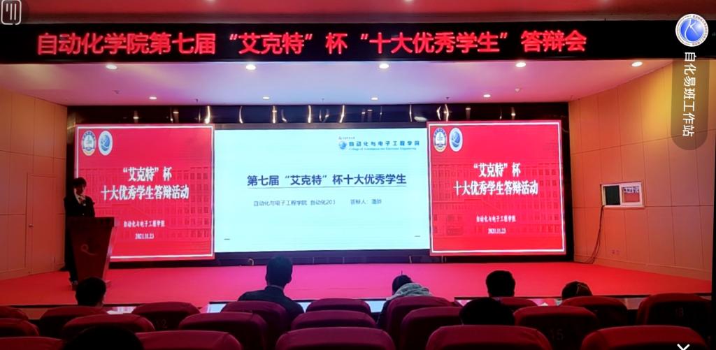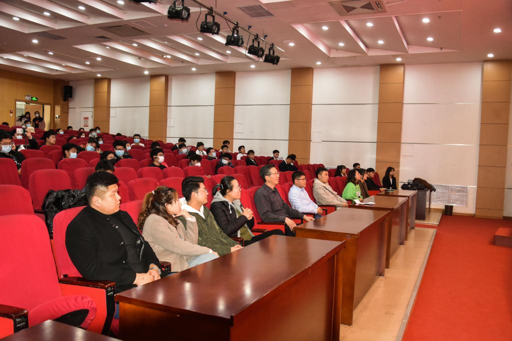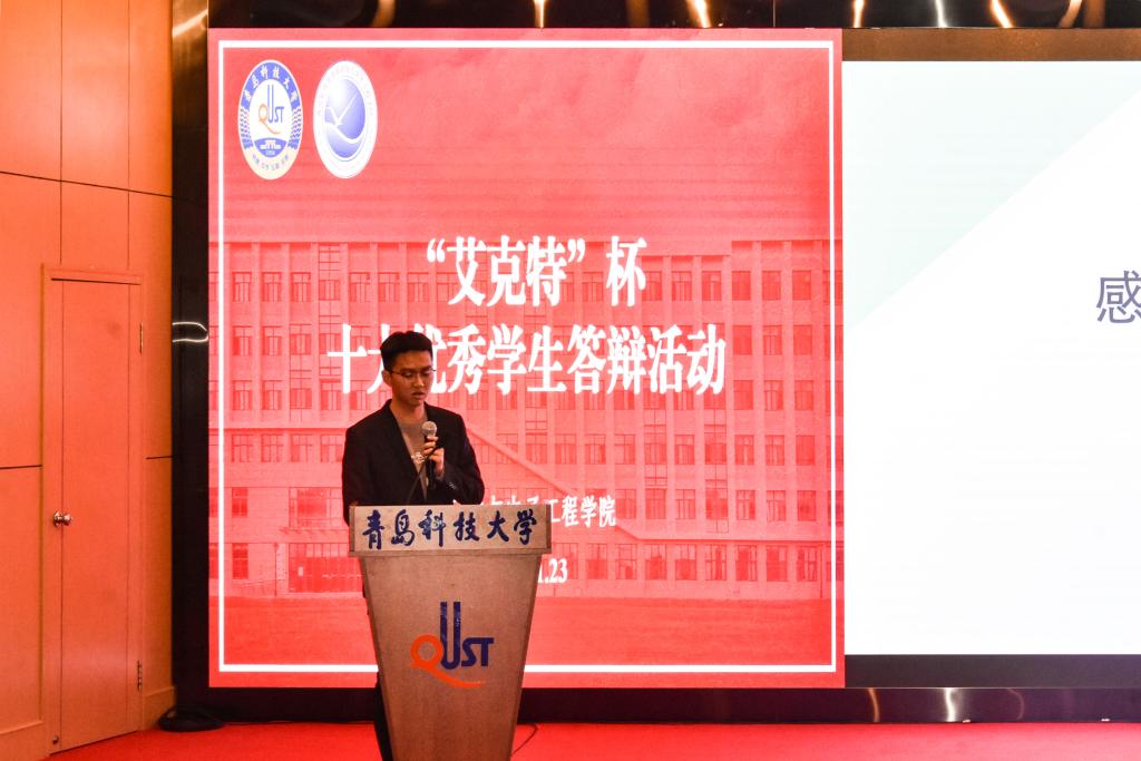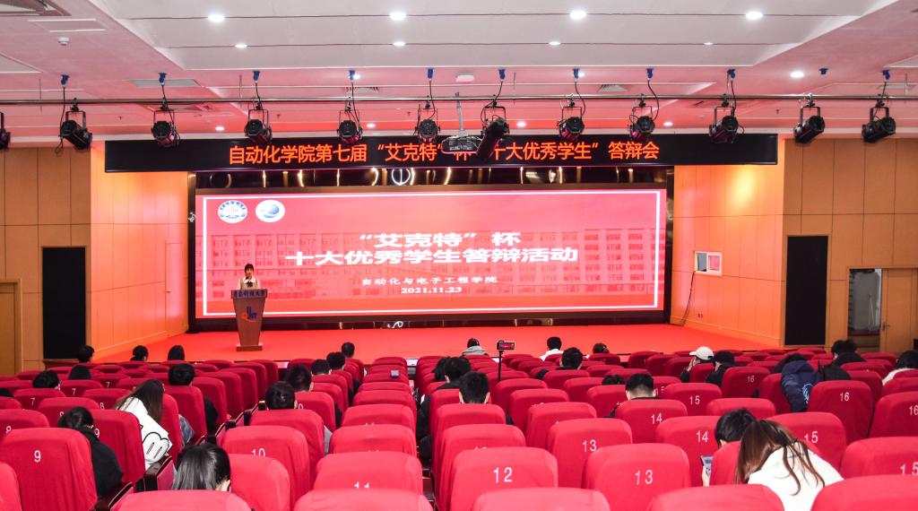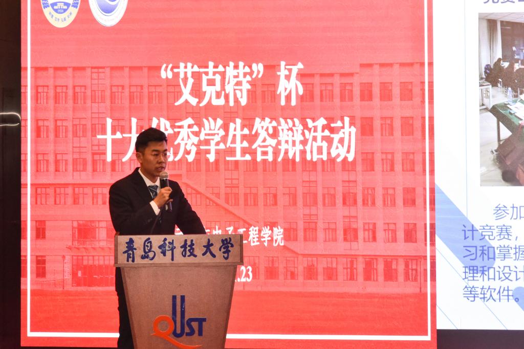 于11月23日下午在崂山校区英科报告厅举行第七届“艾克特”杯“十大优秀学生”答辩会。学院副院长、院校友会副会长曹梦龙,学院党委副书记兼副院长、院校友会秘书长马寒,团委书记兼学工办主任郭蒙蒙,团委副书记兼学工办副主任于彬、郝雄文,全体团委老师以及各年级学生代表参加活动。此次答辩会通过自化易班工作站抖音账号线上同步直播。