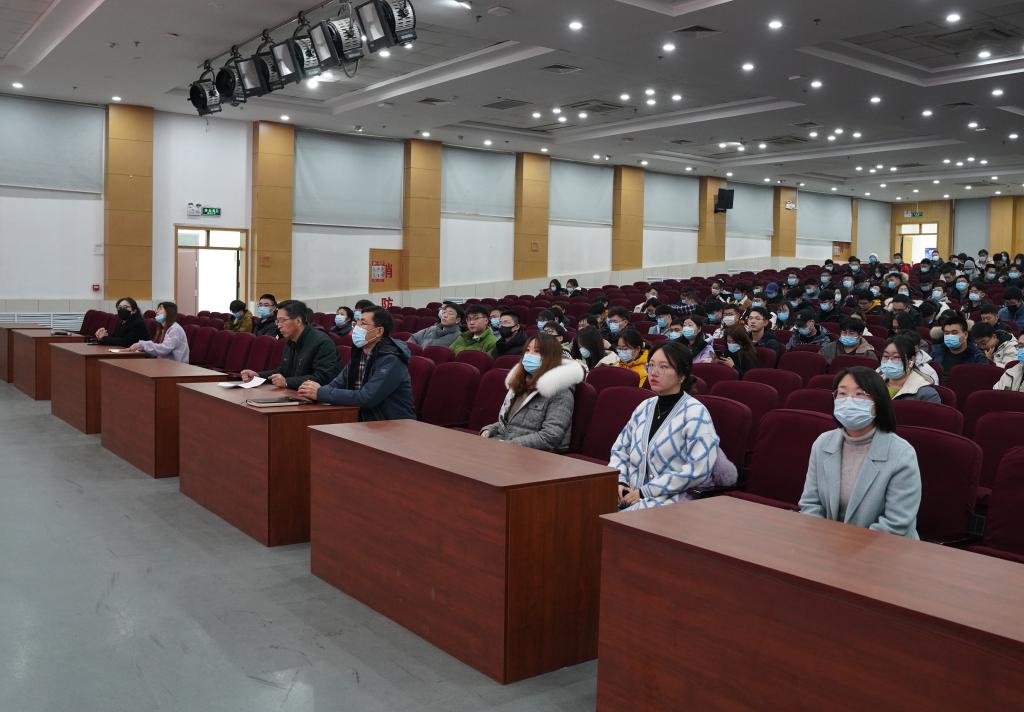 党委书记吕德谦,副院长曹梦龙,党委副书记兼副院长马寒,青岛展诚科技有限公司总经理孙延辉,测控教研室主任樊春玲,各年级辅导员及2018级全体学生参加会议。