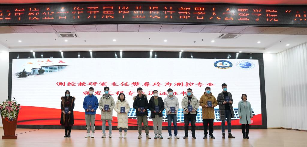 测控教研室主任樊春玲为测控专业颁发工程专业认证证书。