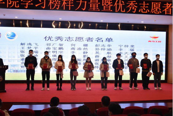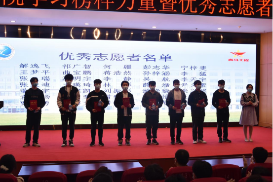 在英科报告厅举办“榜样引路铸魂,众志成城抗疫”志愿者表彰大会,学院党委副书记兼副院长马寒,团委老师孙晓旭、张郁浩、安柏雅、赵赪赪及各年级学生代表、志愿者代表参加活动。