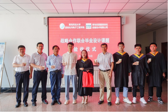 6月15日,依托学院“AI自化”品牌推出的“AI工赋”主题活动校企合作联合毕业设计课题验收仪式举行。学院党政领导吕德谦、曹梦龙、马寒和师生代表参加验收仪式。学院联合青岛优易酿自动化设备技术有限公司开展的毕业设计课题《啤酒发酵设备的生产调试与控制》现场结项通过。