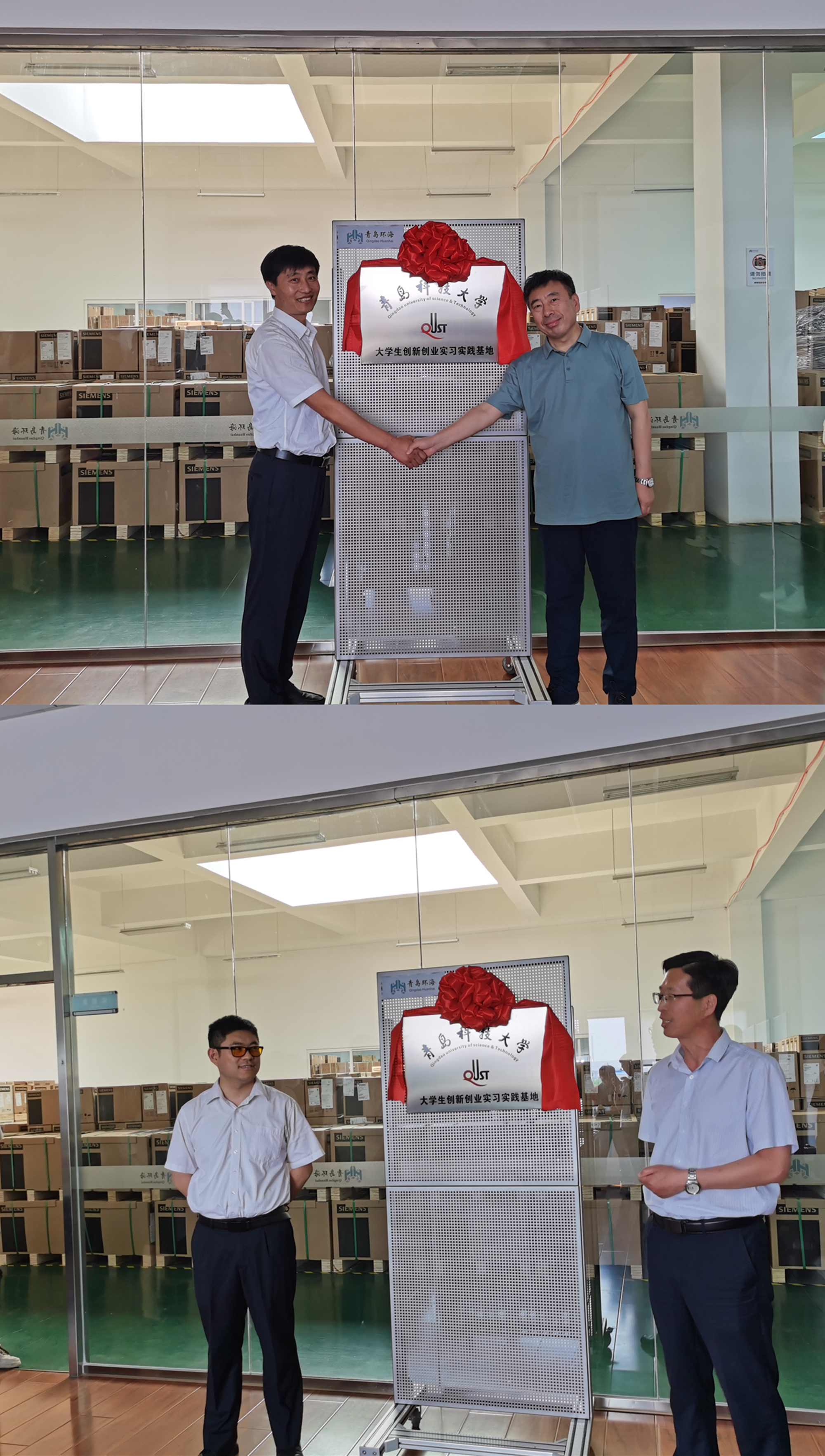 在师生和企业负责人的共同见证下,现场举行了大学生创新创业实习实践基地的签约揭牌仪式,马寒和赵梅梅分别代表学院和企业签署校企合作协议,徐华与袁春雷共同为实践基地揭牌。
