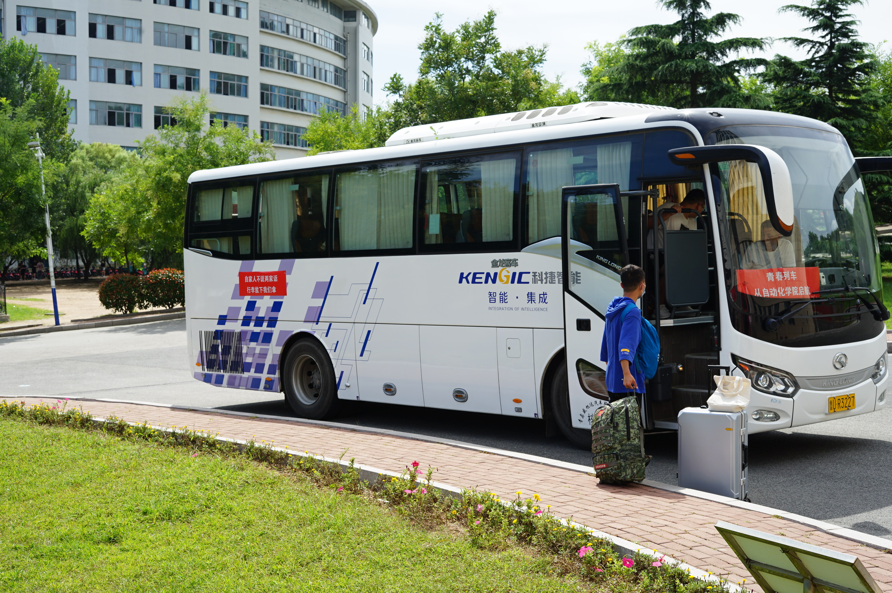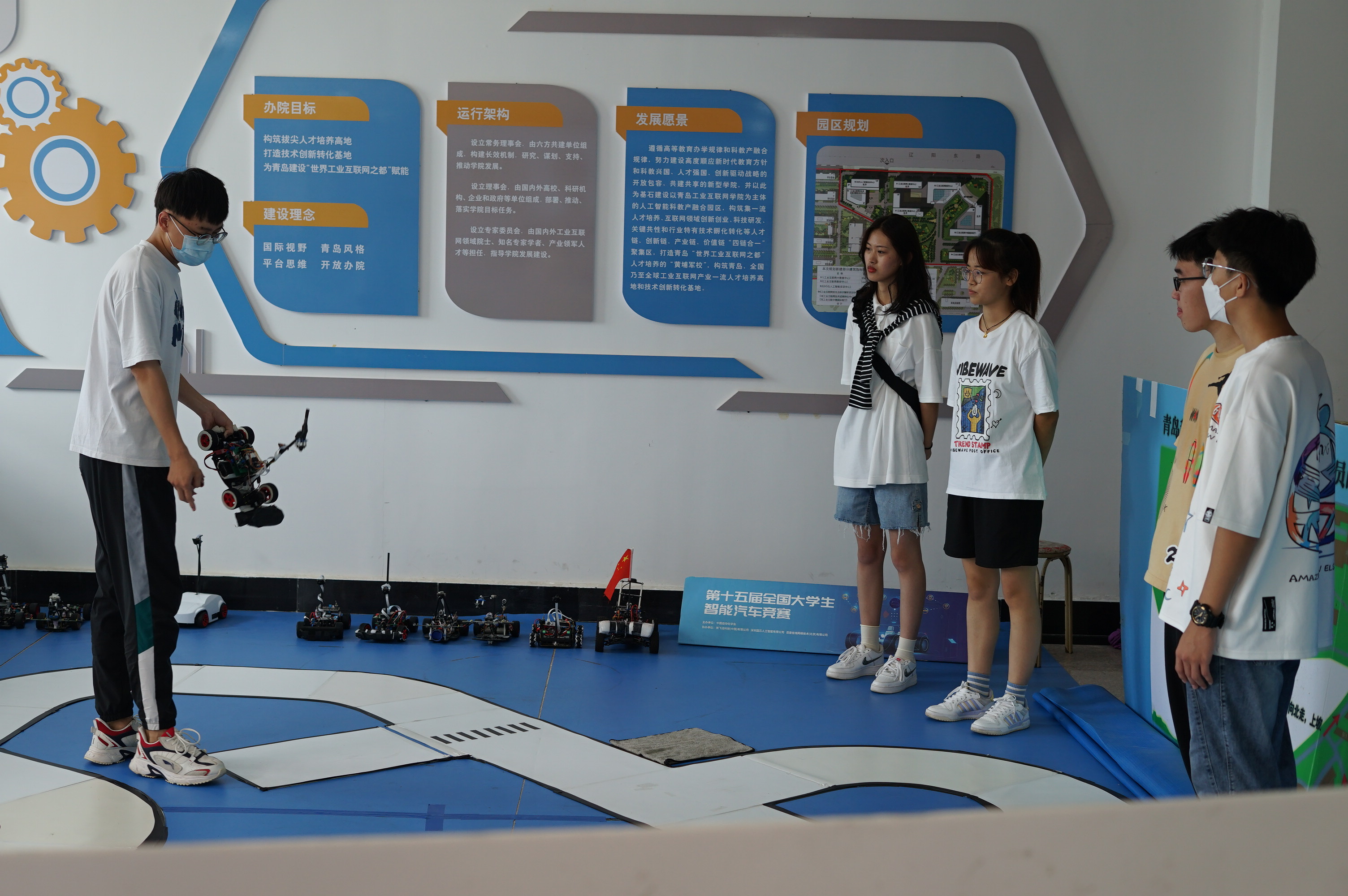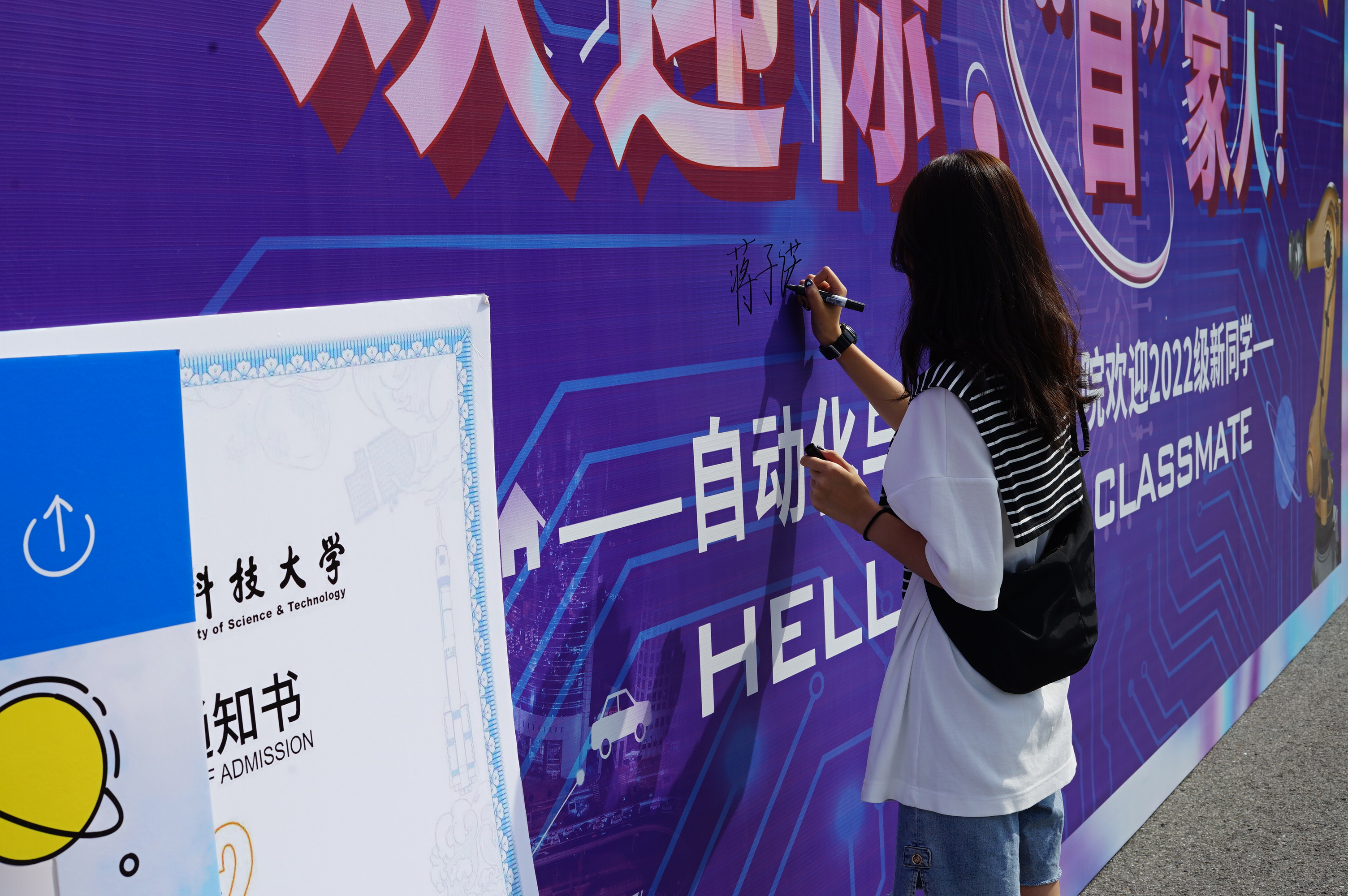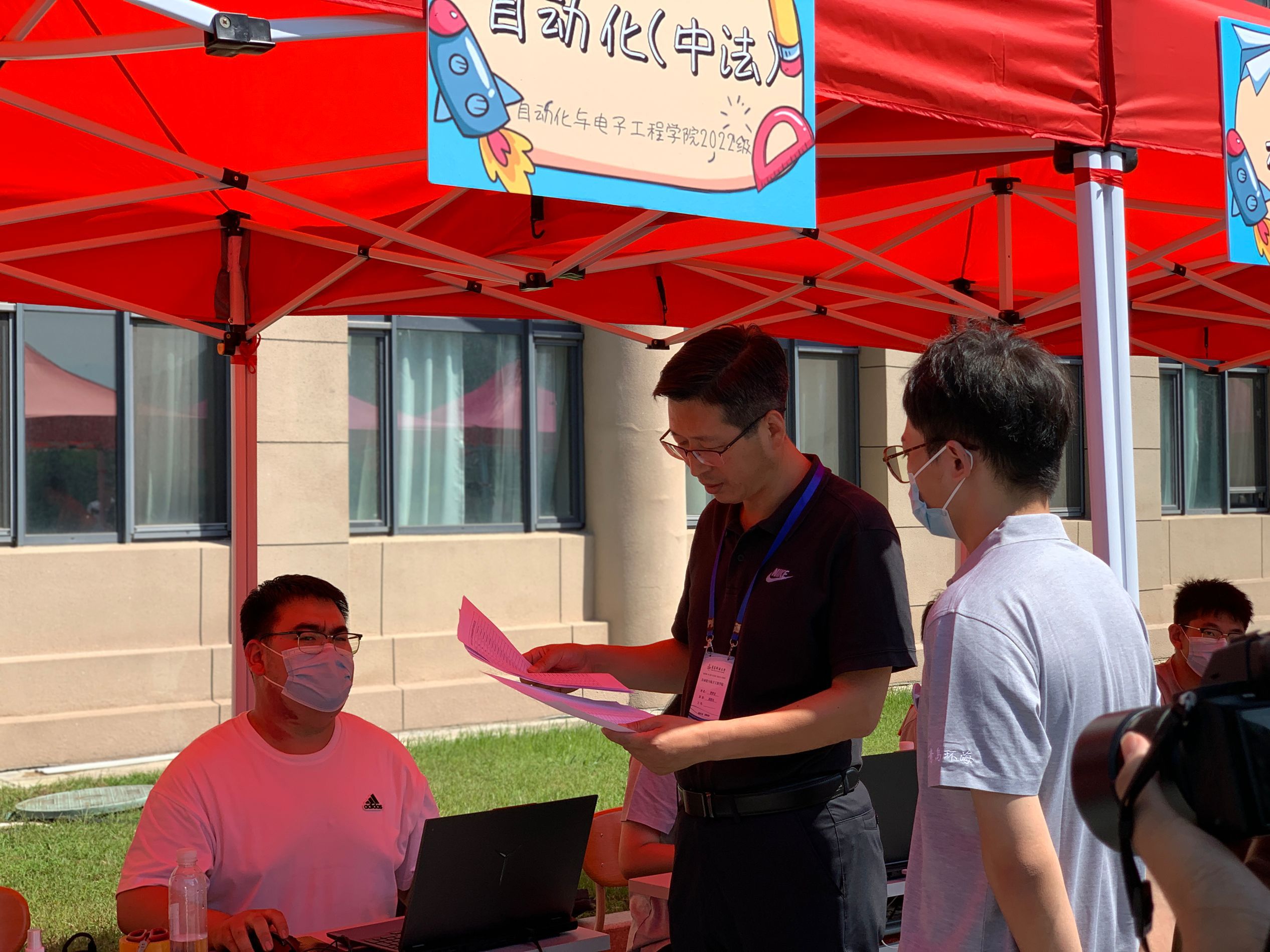 用心——别出“新”裁,打造自化迎新亮点。今年,学院立足学校“两服务一引领”发展大局,将校企合作融入人才培养全过程,深度彰显学院“AI工赋”工作特色。青岛环海新时代科技有限公司、青岛科捷智能有限公司、山东朗进科技有限公司、青岛科创信达有限公司等战略合作伙伴、校友企业精心提供了迎新礼包、“温暖到寝”迎新车辆、定制工作服等物资,为新生送上特别的“见面礼”,并安排专业人员在现场协助迎新工作,为新生提供大学生职业规划指导,在迎新点上好“开学第一课”;迎新处设有智能车赛道和展台,鼓励、引导新生积极参与科研创新,营造校园浓厚人文氛围和科学情趣;学院楼前放置“欢迎你,‘自’家人”特色签名墙、拍照打卡点,师生共同留下“青科独家记忆”。推陈出新,用心别致的工作举措,实现迎新更“赢心”。