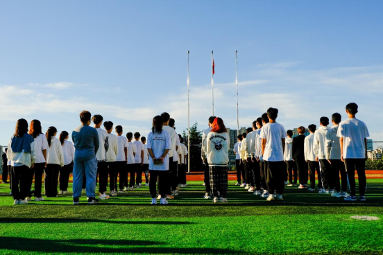在南苑操场举行“喜迎国庆,爱我国防”主题升旗仪式。现场庄严肃穆,队伍整齐划一,国旗护卫队队员姿态挺拔,护送国旗走向升旗台,国歌奏响,五星红旗冉冉升起,师生们庄严行注目礼。升旗仪式上,学院团委书记兼学工办主任郭蒙蒙、学生代表张思雨分别进行主题宣讲,指出要让关心国防、热爱国防、建设国防、保卫国防,成为全院的思想共识和自觉行动,号召广大自化学子以实际行动传承科大家风、发扬科大精神,践行橡胶品格,主动投身学校内涵式高质量发展大局。