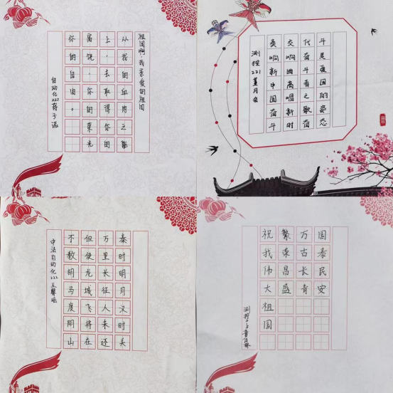 寄一纸家国笔墨,光影筑梦华夏。盛世翰墨大家写,执笔绘爱映祖国。为进一步弘扬社会主义核心价值观,唱响爱党、爱国主旋律,学院开展庆国庆书法比赛,以翰墨寄情怀,于行云流水间表达着青年学子对祖国最美好的祝愿;用镜头记录国旗风采,用视频传递爱国情怀。国庆节来临之际,学院学子积极参与“喜迎二十大 我与国旗合个影”活动,定格最美中国红,“晒”的是与国旗合影,“秀”的是对祖国的热爱。