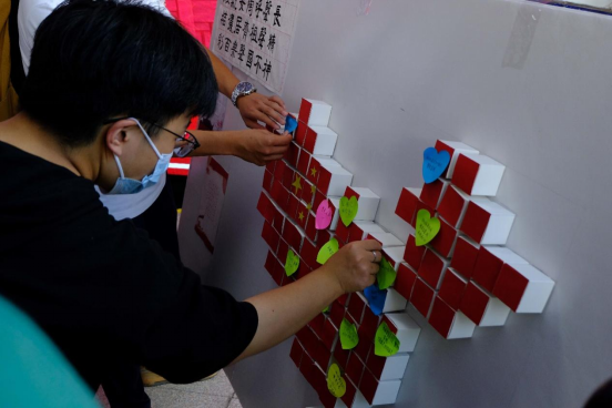 举办“共庆华诞,家国礼赞”国庆风采展。活动伊始,学院党委副书记兼副院长马寒致辞。他表示,今年是党的二十大召开之年,也是我国立足第一个百年奋斗目标,向实现第二个百年奋斗目标奋勇前进的重要一年,青年学子应从新中国成立73周年来发展壮大的现实成就中增强民族自豪感,坚定“四个自信”,增强担当民族复兴大任、锤炼个人本领的自觉,以优异成绩向祖国73华诞献礼。活动现场展出了庆国庆书法比赛优秀作品,郭蒙蒙为获奖同学颁奖。随后,师生共制中国地图,书写对祖国的祝福语,合唱《我和我的祖国》,将祝福祖国的千言万语,融入爱国之心与报国之志,用一曲时代长歌,祝福伟大祖国繁荣昌盛。