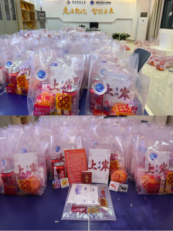 学院精心准备近500份考研大礼包,有“脐”开得胜、心想事“橙”的橙子,蕴含美好寓意的钥匙扣,专属可乐、口罩和手帕纸,一封给“自”家人的信,用满满的仪式感,为考研学子加油鼓劲。