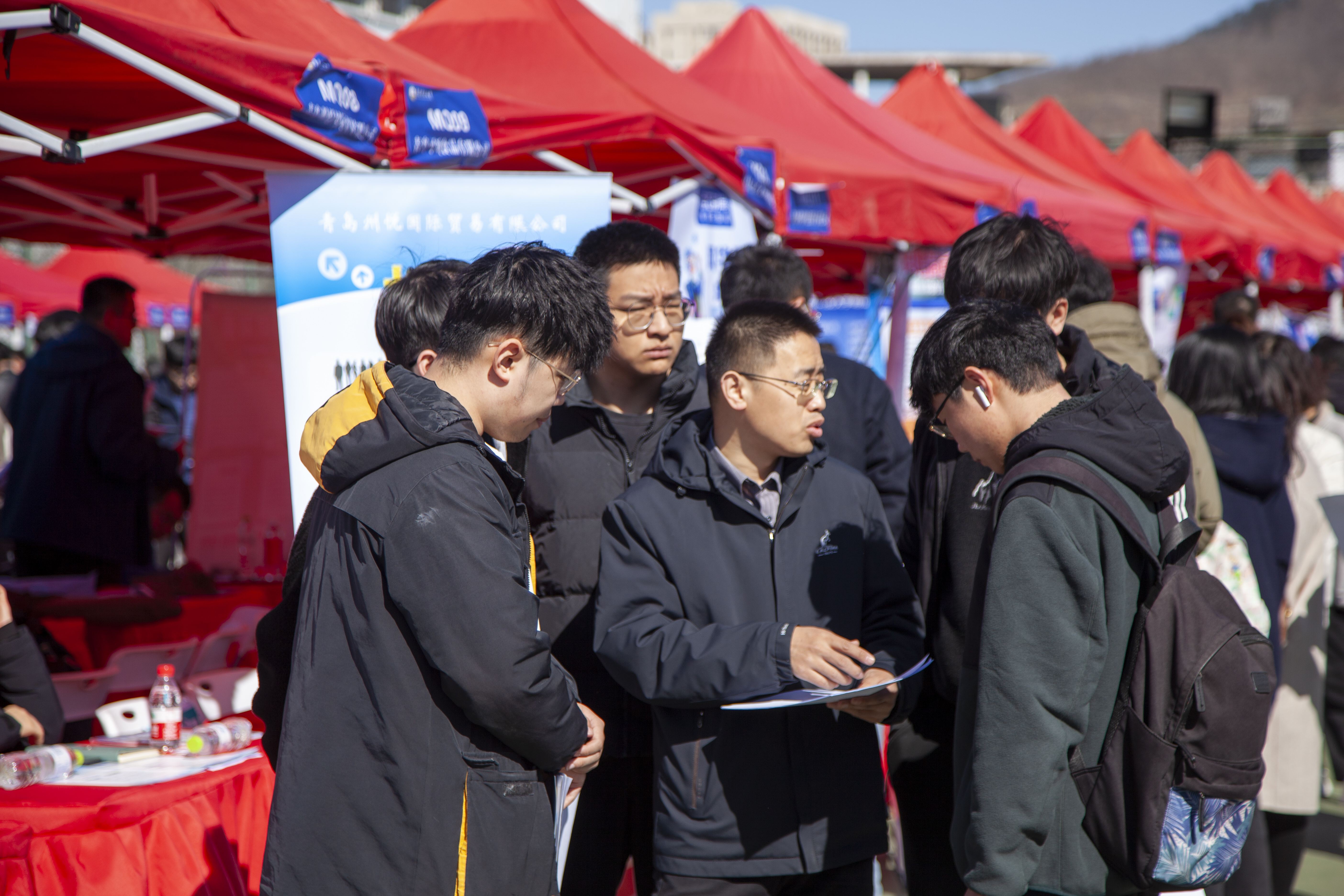 与中德科技学院联合承办的学校“服务区域发展”2024届毕业生春季就业双选会在崂山校区南苑篮球场隆重举行。学校党委常委、副校长丁林,学生处、swag直播