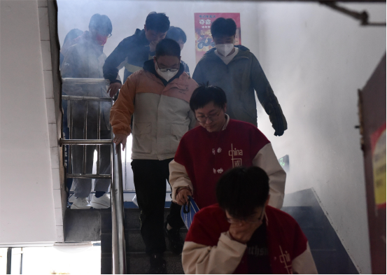 赵淑东老师对演练过程作了简要点评,并提到四个消防能力,即检查消除火灾的能力、扑救初级火灾的能力、组织疏散逃生能力、消防宣传教育能力,是全体师生应牢固掌握的必要知识点,也是守牢消防安全底线红线的必备技能。他以国内典型火灾事故案例作为警示,教育引导同学们要做到四懂四会,掌握四个能力,肩负防火安全责任,筑牢消防安全意识。