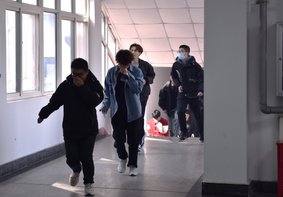 本次消防演练包括火灾报警演练、疏散逃生演练以及灭火器使用教学等多个环节,邀请学校保卫处消防科老师赵淑东、于全波作主讲及指导。随着安全疏散警报拉响,演练正式开始。全体学生迅速做出反应,在老师和志愿者的带领引导下按设定好的疏散路线,快速、安全、有序地撤离宿舍。演练全程紧张、有序、迅速完成,全体学生无一遗漏顺利在安全地点集合,达成演练预期效果。