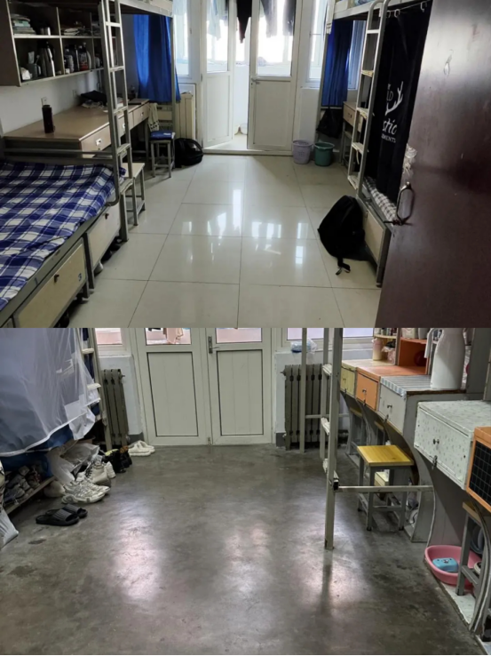 针对宿舍卫生环境和安全隐患,学院以“窗明几净,健康生活”为主题,开展了每周一次学生宿舍的自查自改,建立自查档案、强化督促整改、落实结果运用,引导广大学生自我教育、自我管理、自我服务、自我监督。通过线上推广、线下评选等多种方式引导广大学生积极维护宿舍环境,全面提升宿舍整体形象,优秀宿舍在学院融媒体平台展播。经过自查自改,同学们的宿舍环境有了明显的改变,从门口到阳台,物品摆放井然有序。