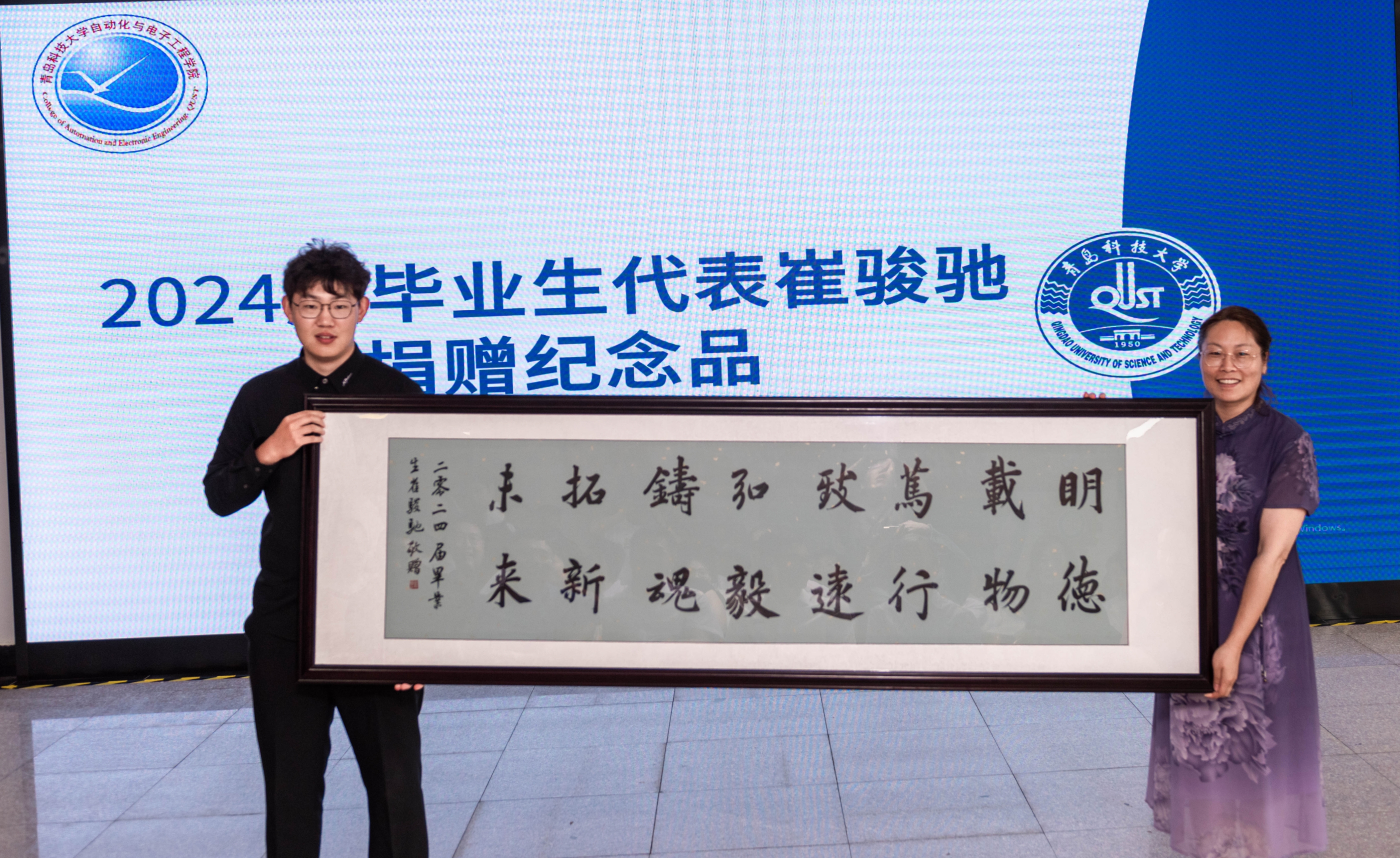 欢送会上,李卉代表学院接受了2024届毕业生代表崔骏驰捐赠的书法纪念品。巩敦卫在致辞中向2024届毕业生送上祝贺与祝福,向在一线教学、后勤保障等育人岗位上默默付出的教职工们表示敬意和诚挚感谢。巩敦卫以“三个希望”作与毕业生的“临别叮嘱”:一是空谈误国、实干兴邦。希望同学们立足本职岗位,在急难险重新任务中挺身而出,积极投身中国式现代化建设,在科技创新、乡村振兴、绿色发展、社会服务、卫国戍边等各方面建功立业;二是永葆初心、清澈纯粹。希望“自”家学子们继续发扬科大精神、践行橡胶品格,从大处着眼、难处用劲,始终保持swag直播
