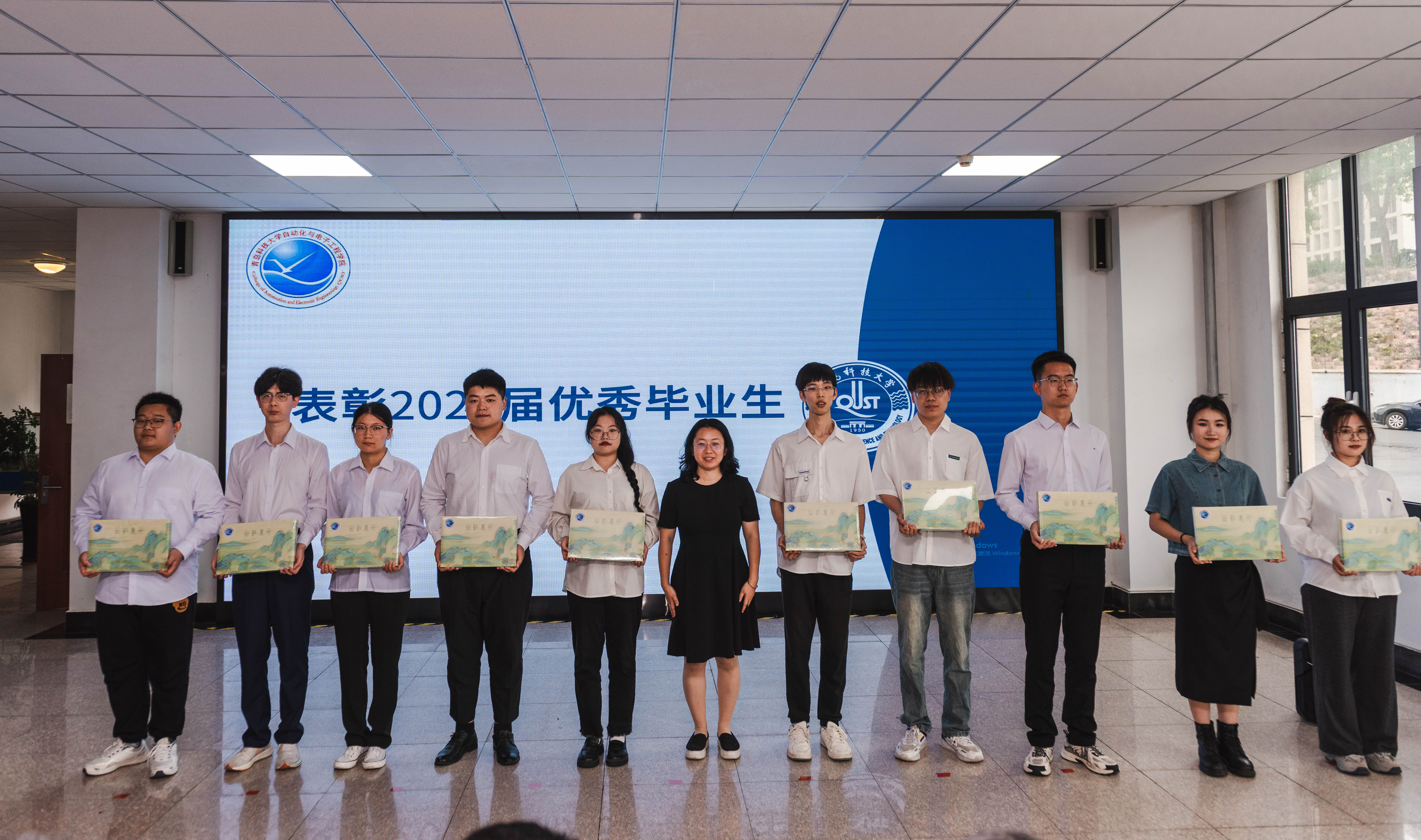 与会领导、嘉宾为获得2023年“饮水思源”奖学金的毕业生、山东省优秀毕业生、体育达人、学科竞赛达人、考研典型、高质量就业典型、基层就业典型等优秀学生代表颁奖。