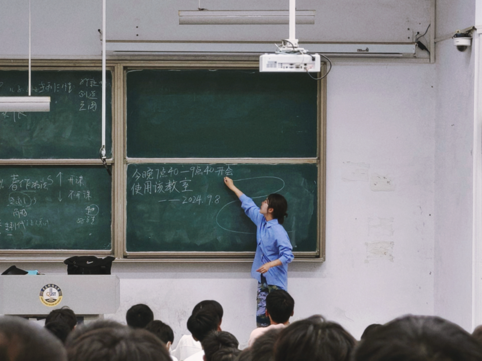 于9月8日于弘毅楼E区401、402教室举办了以“融入·成长·启航”为主题的开学第一课暨新生入学见面会。此次会议由2024级新生辅导员李卓林、丁雅琼主持,全体大一新生共同参加。
