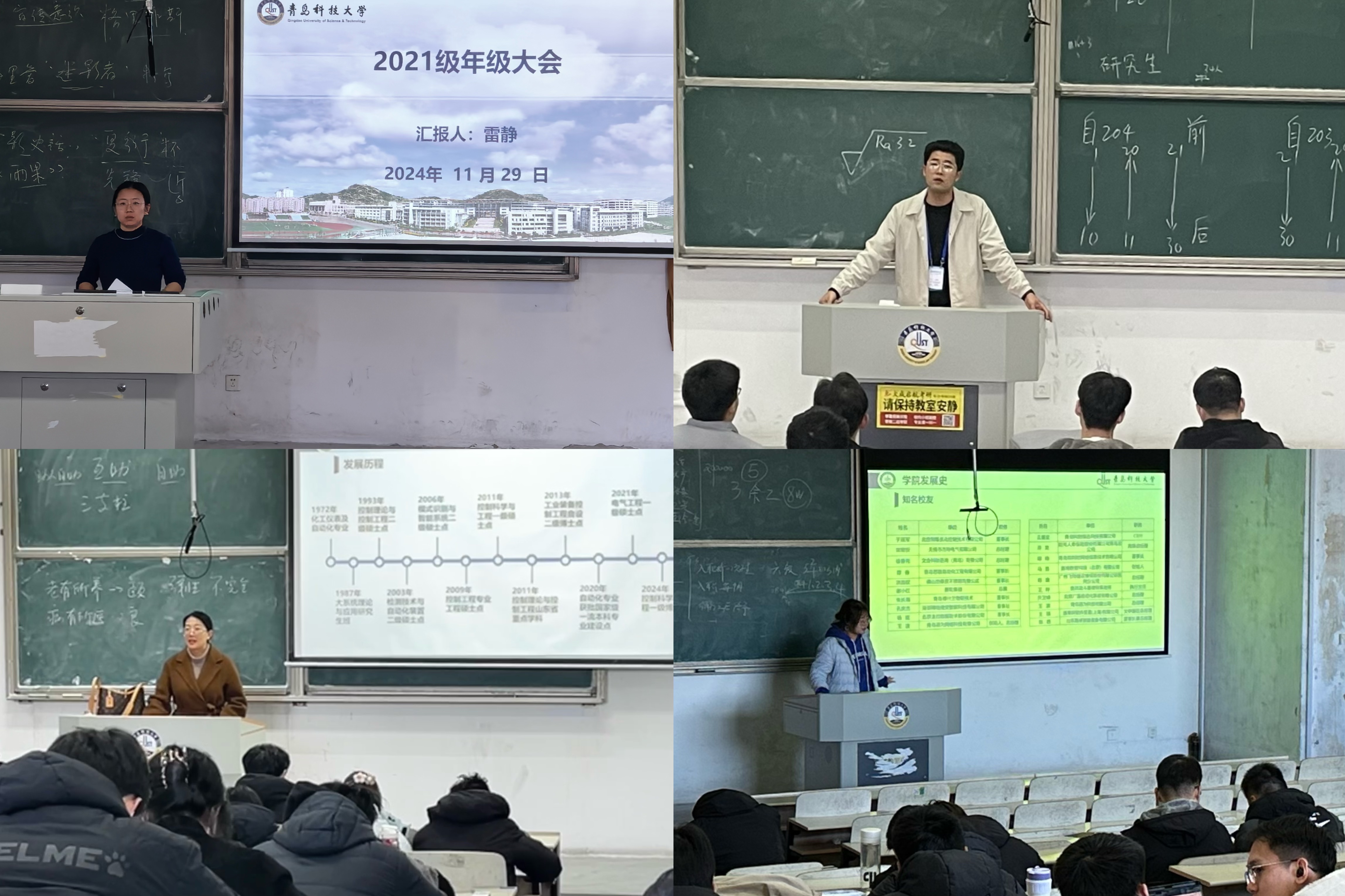 会上,各年级辅导员深入阐释了党的二十届三中全会精神要义,详细介绍了学院的发展历程与现状,也对刚刚召开的中国自动化大会做了介绍,对自动化人精神进行了阐释,希望同学们不断追求卓越,勇攀科技高峰。辅导员重点解析了一级学科博士点建设背景下学院学生工作的新任务与新要求,即秉持“选+培”的理念,明确“智行研习营”在选拔优秀人才的同时,更为注重学子全面发展与个性化培养;遵循“严+细”的原则,对当前学业中存在的问题进行了深刻剖析,审思学风建设的重要性,提出了具体措施以营造严谨治学、勤奋向上的学习氛围,切实把稳“科创教育”航向,力促理论与实践的深度融合,持续激发学生的创新活力与实践潜能;立足“广+稳”的维度,着重强调了行为文明与安全教育,借助系列生动案例与实用指导策略,引导学生树立安全意识,养成文明习惯。结合各年级学生工作重点,对安全稳定、宿舍建设、就业工作、学科竞赛、健康跑、晚点名、考风考纪等工作进行了安排部署。