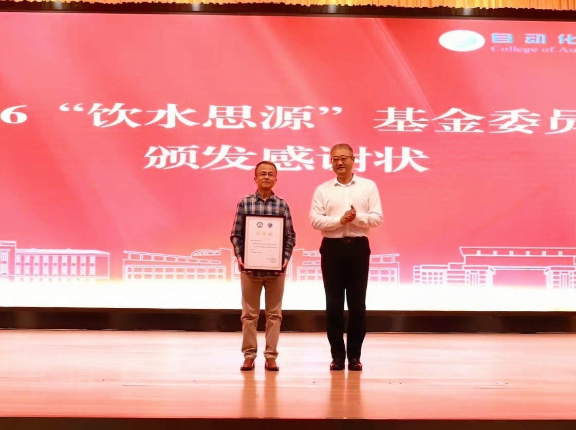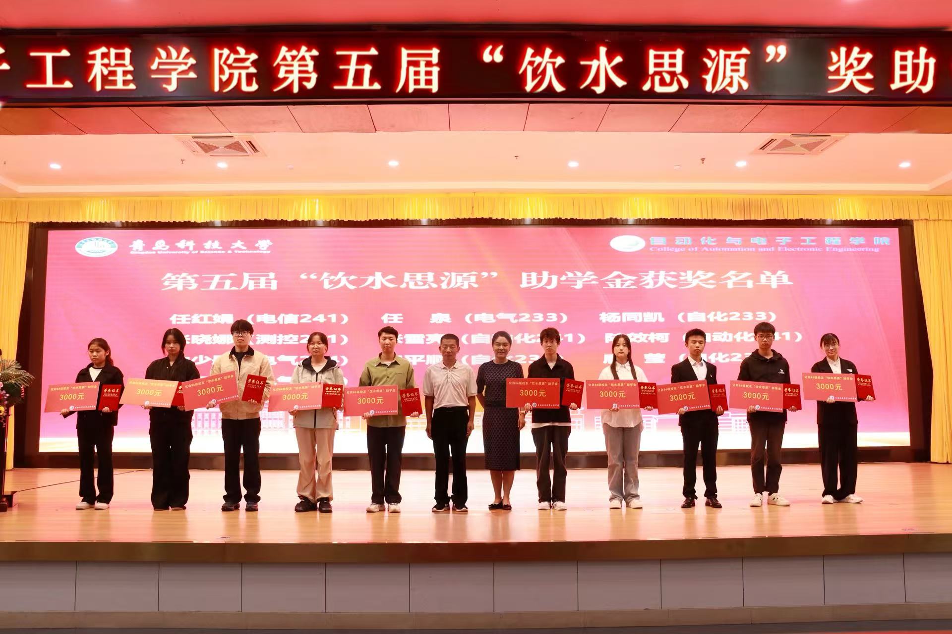 郭永为化自86“饮水思源”基金委员会成员代表颁发感谢状。陈鑫宣读了2025年“饮水思源”奖助学金获奖学生名单,校友代表贾玉珍、赵向阳、卢宗福、陈青叶为获奖学生颁发荣誉证书。校友代表、化自86“饮水思源”基金委员会成员董胜讲话,他回忆了自己的求学生活,感谢学校和老师的培养。董胜鼓励学子努力学习,钻研专业,适应新形势下人工智能发展趋势;心怀感恩、勇担使命,传承“饮水思源”精神,回报学校学院。生宁报告了“饮水思源”奖助学金的使用情况,奖助学金设立以来,累计资助100位学子,充分彰显了校友对母校的深情与回馈社会的担当。获奖学生代表、自动化233杨同凯分享了自己的奋斗经历,表达了对学院、老师以及校友的感激之情,并表示将倍加珍惜这份荣誉,回报母校与社会。