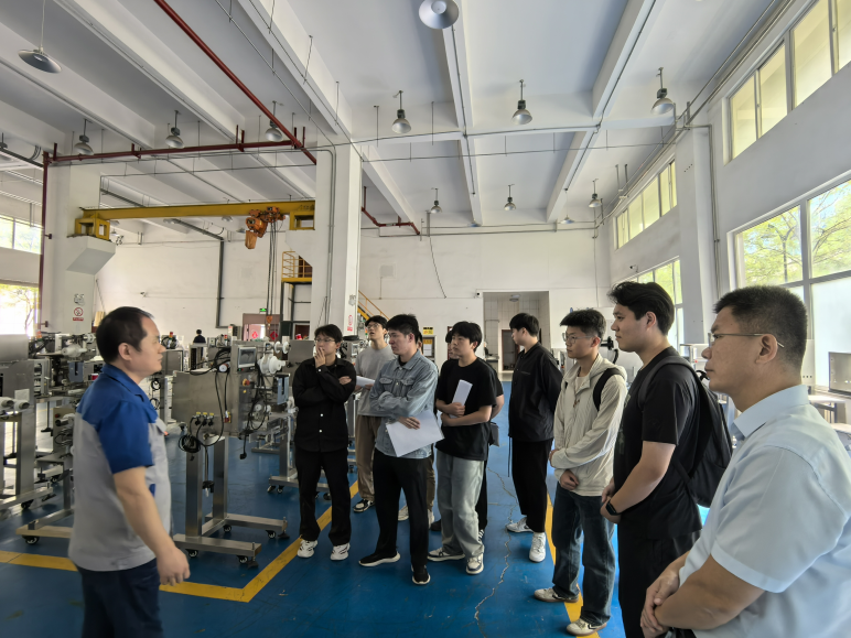 企业负责人带领刘名森一行人深入企业生产车间、研发中心,实地参观自动化设备的生产流程、技术研发成果及实际应用场景。参观过程中,技术人员详细讲解了各类自动化设备的工作原理、核心技术及行业应用前景,让师生们直观感受到自动化技术在智能制造领域的创新应用,进一步拓宽了专业视野。