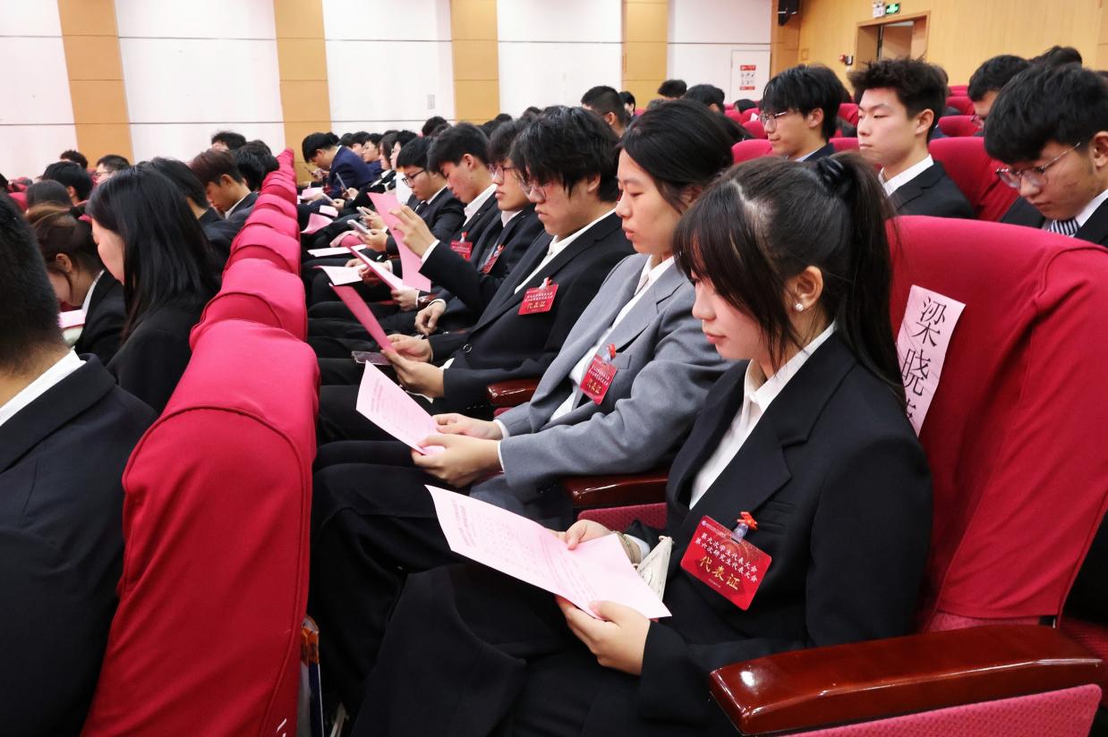 本次大会代表以全心全意服务同学为宗旨,积极为学院发展谏言献策,履行自身职责,共同规划学院发展的美好蓝图。广大代表纷纷表示,将以此次大会为锚点,持续推进学生服务工作提质增效,推动“理论学习—学风建设—行为规范—科技创新—实践育人—骨干锻造”六位一体人才培养体系迭代升级,以实际行动践行“请党放心,强国有我”的青春誓言。