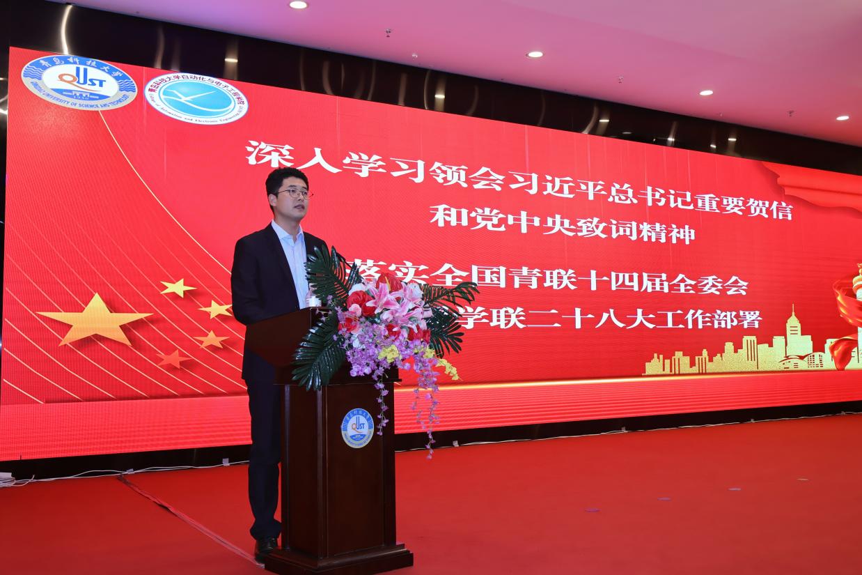 崂山校区学生会负责人于子宸发言,信息科学技术学院学生会代表郑志鸣致贺词,各兄弟学院为swag直播