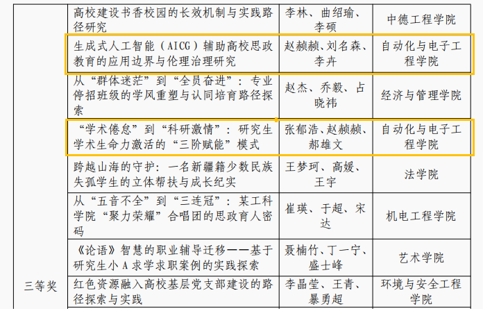 学工团队共斩获一等奖1项、三等奖2项,展现了学院在党建思政研究领域的探索成果。