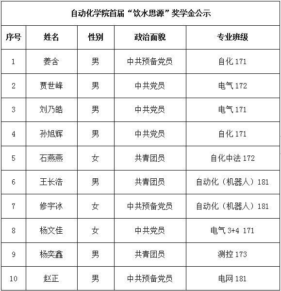 根据《关于评选swag直播 首届“饮水思源”奖助学金的通知》,经个人申请、学院评审推荐、化自86基金监督委员会投票表决等环节,拟确定姜含等10名学生获得swag直播 首届“饮水思源”奖学金、拟确定纪光宝等10名学生获得swag直播 首届“饮水思源”助学金。现予以公示,公示期为12月23日至12月25日,如有异议者,请在公示期内实名向学院反映。