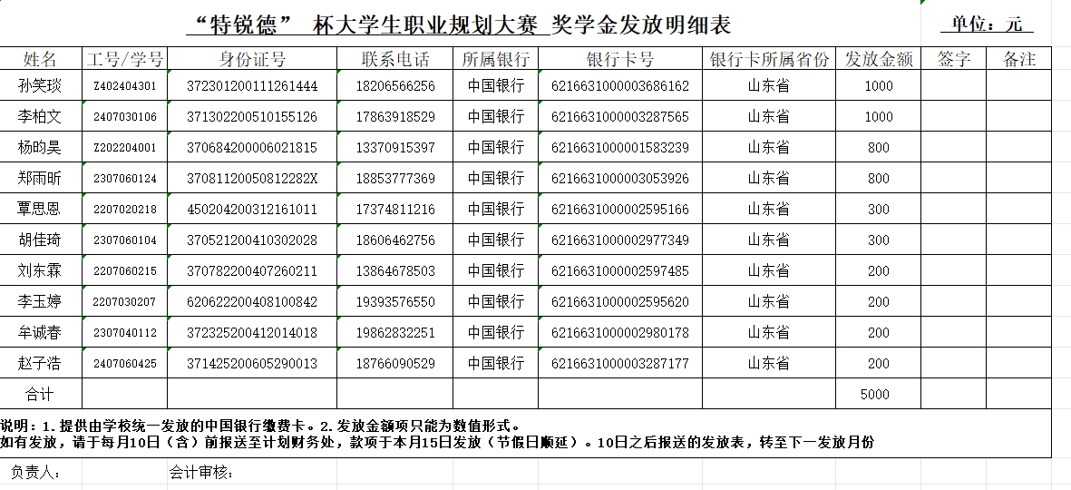 “特锐德”杯swag直播 第三届大学生职业规划大赛奖学金公示如下: