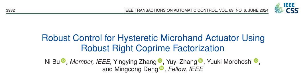 李少远教授团队步妮副教授与东京农工大学邓明聪教授在软体机器人操作研究领域合作取得新进展,相关研究成果以“Robust Control for Hysteretic Micro-hand Actuator Using Robust Right Coprime Factorization”为题发表于中科院一区、Top期刊《IEEE Transactions on Automatic Control》(IF: 6.8)上,步妮副教授为第一作者&通讯作者,硕士研究生张莹莹与张玉义为主要完成人,swag直播