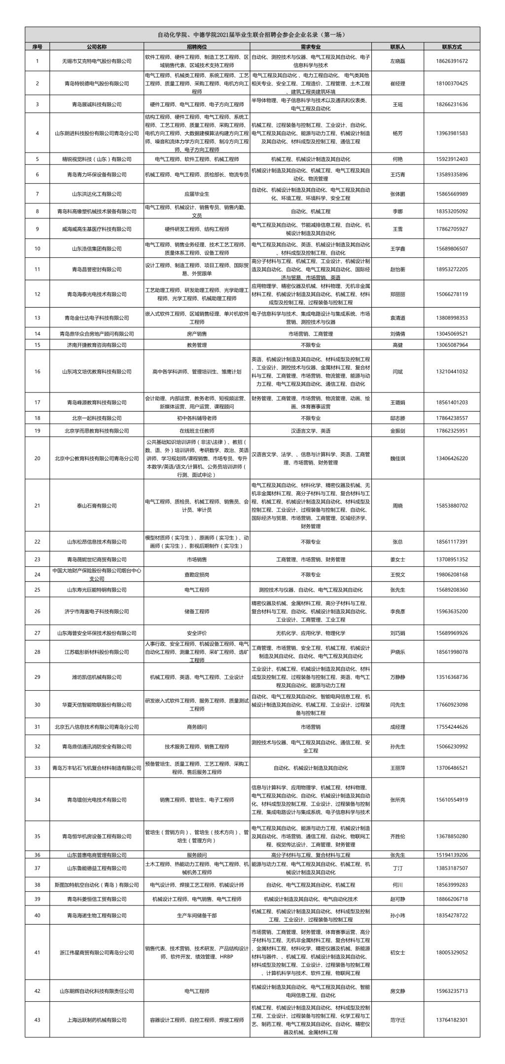 swag直播 、中德学院2021届毕业生联合招聘会参会企业名录(第一场)