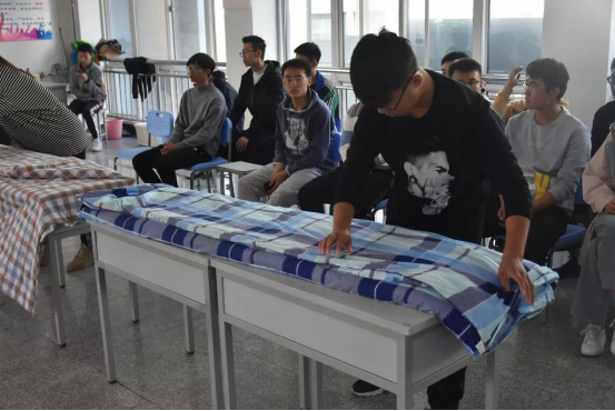 叠军被大赛是本次宿舍文化节的第一个活动。经过前期辅导员老师和军协同学的教授,参赛选手叠军被技艺高超、利落娴熟,一招一式都标准规范,很快将整齐美观的军被呈现在评委面前。经过评委打分,最终9名同学分获一二三等奖。
