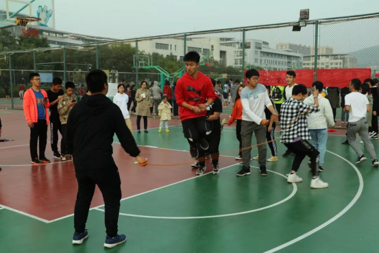 虽各班级“备战”时间仅有三四天,但跳绳训练却开展的如火如荼,篮球场、网球场、停车场都能看见三五成群的班级练得起劲。今天能在赛场上一展身手了。