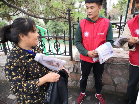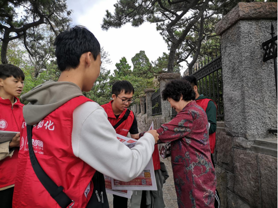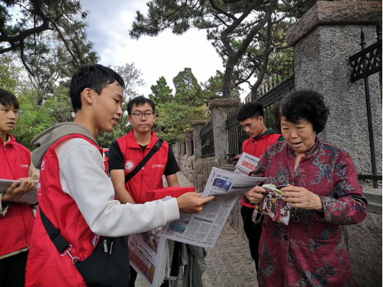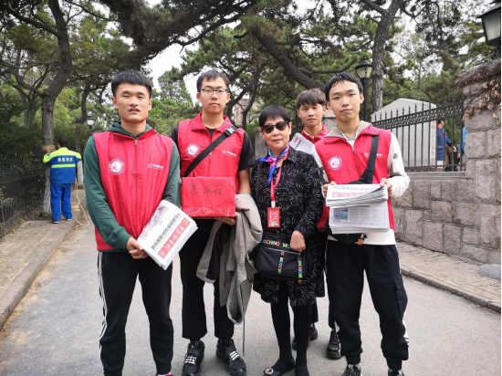 青年志愿者协会的同学们长途跋涉来到八大关景点,用暖暖的爱心驱走了凛冽的秋风。义工队队员们和青岛大学的同学们身穿着志愿者的红衣,拿起一踏一踏的报纸,承载着山区孩子们上学的希望,通过义卖报纸给贫困山区孩子们发起了募捐献爱心的活动。