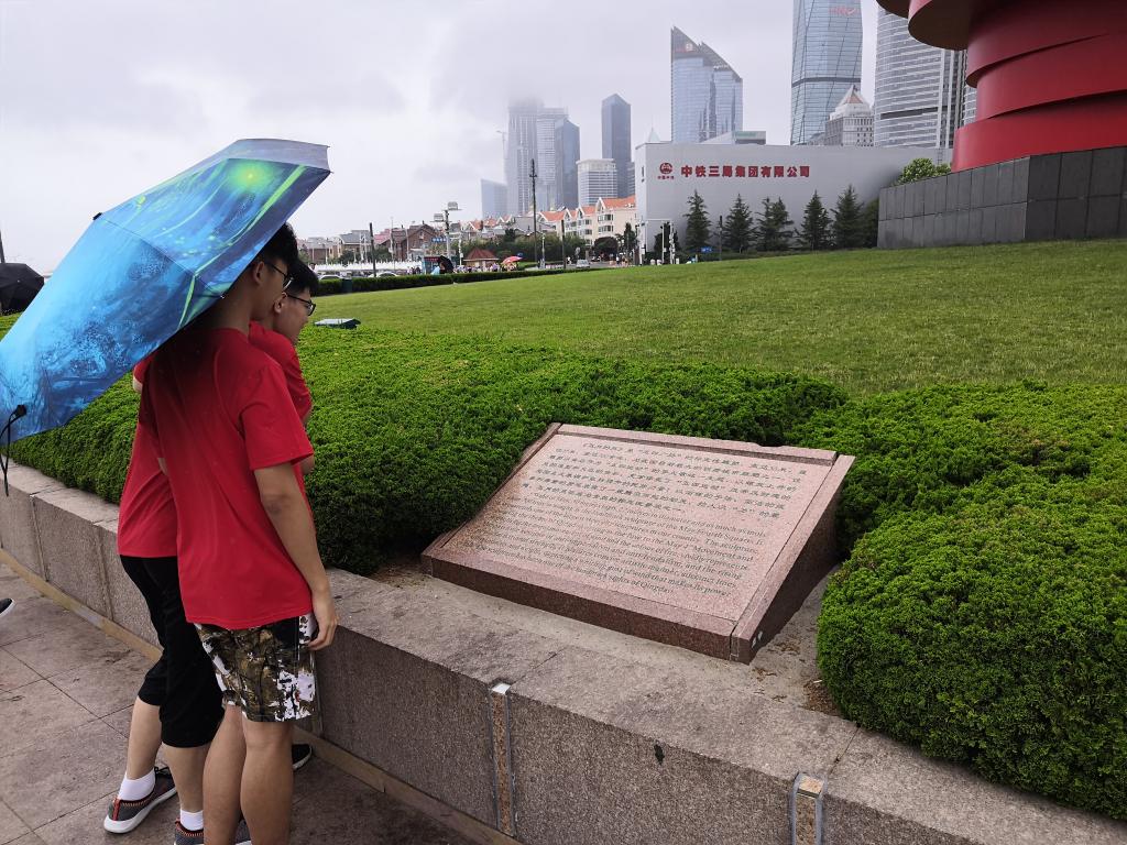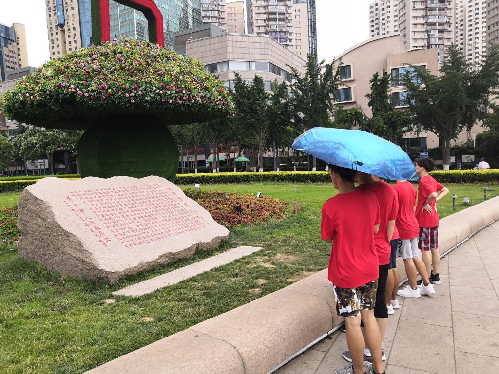 青岛“红色之旅”调研团的成员来到山东省青岛市五四广场参观学习。