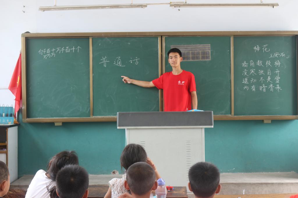 首先,调研团向孩子解释什么是普通话以及普通话发音的特点。先以王安石的《梅花》做朗诵示范,示范完毕后,鼓励孩子起来大声诵读,孩子踊跃表现。随后,成调研团带领孩子学习一些简单的绕口令,让孩子体会普通话的发音特点,起初孩子很难流畅的说出来,但是经过几次练习后,孩子对于绕口令的表达越发熟练。课堂上气氛活跃,调研团和孩子都乐在其中。最后,调研团专门挑选部分孩子作测试,发现他们的普通话水平较以前有着明显的提高。